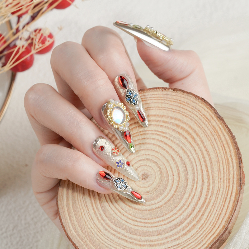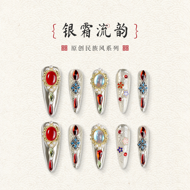 【银霜流韵】重工轻薄手工穿戴甲民族风高端奢华美甲甲片可拆卸