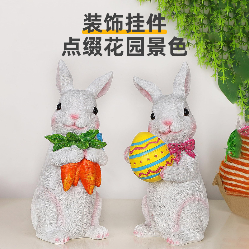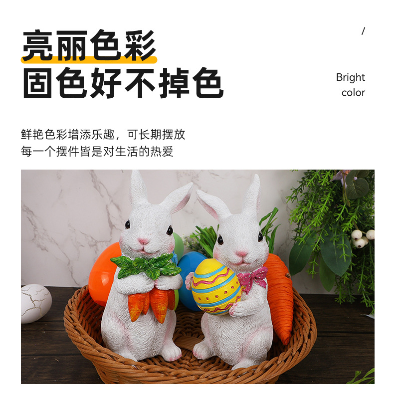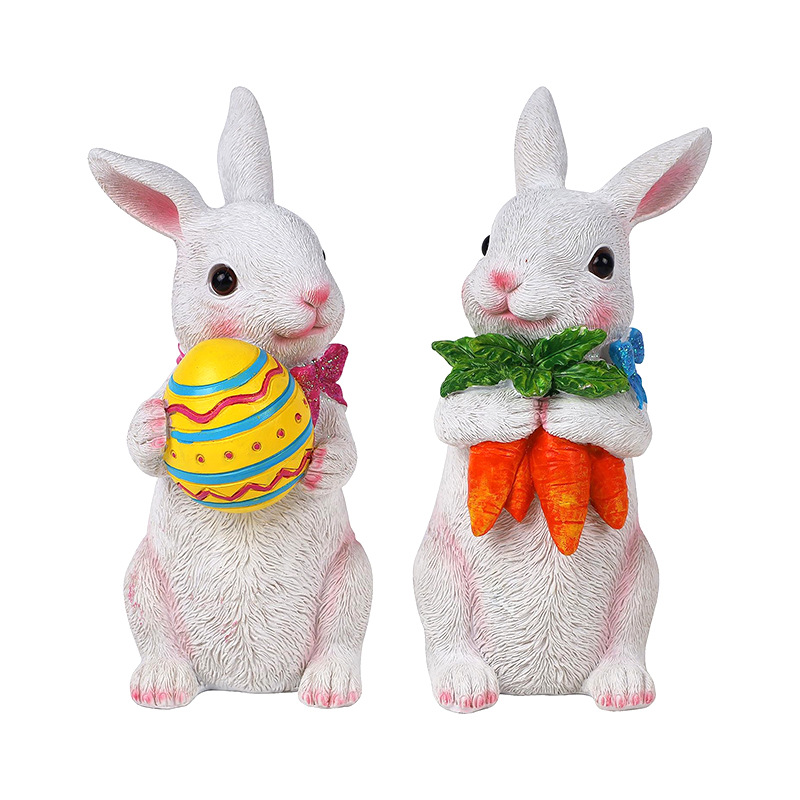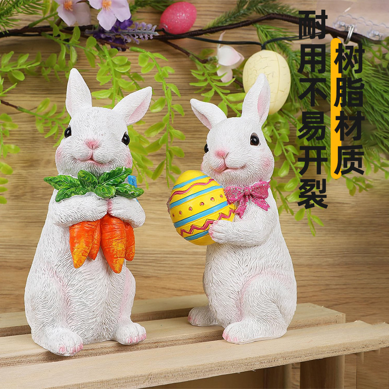 2 件装复活节兔子雕像装饰站立树脂白色兔子情侣雕像桌面装饰品