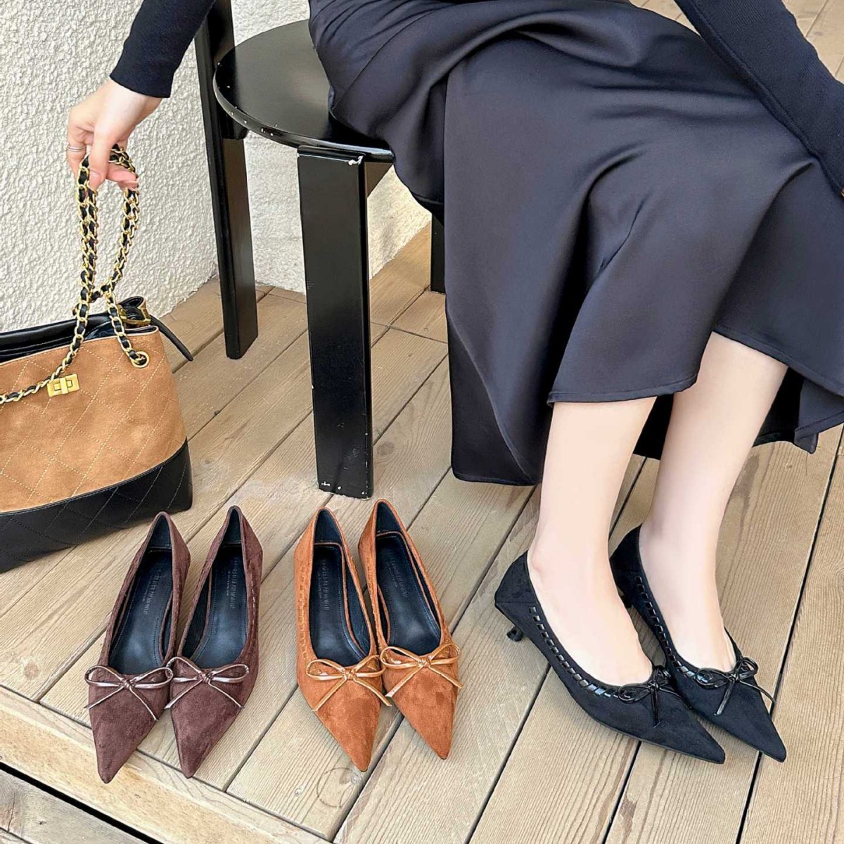 法式尖头蝴蝶结女单鞋2025新款秋冬季时尚舒适小众设计感百搭女鞋