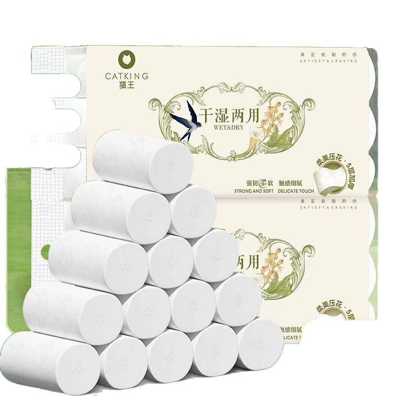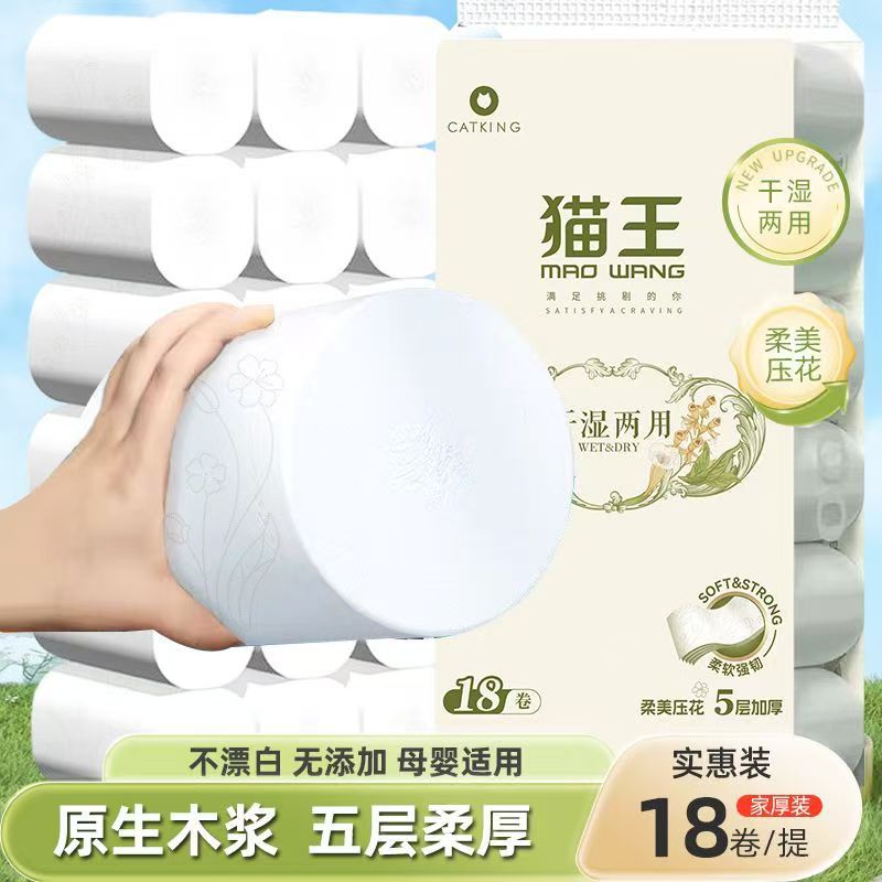 猫王正品韧性卷纸5斤实心2500g家庭装卷纸巾厕纸干湿