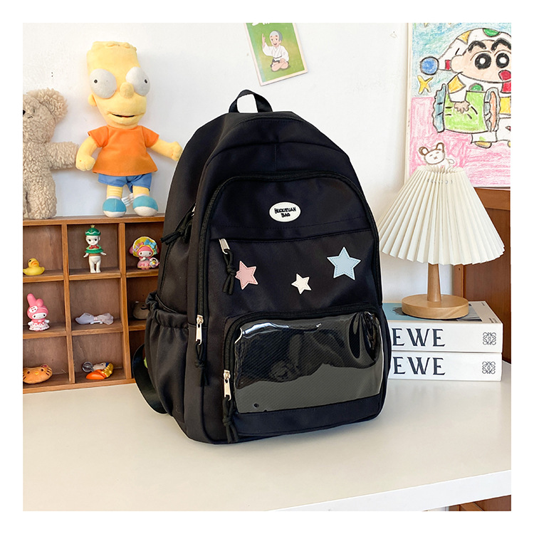 韩版ins小清新女生背包百搭双肩包可爱透明吧唧痛包中小学生书包