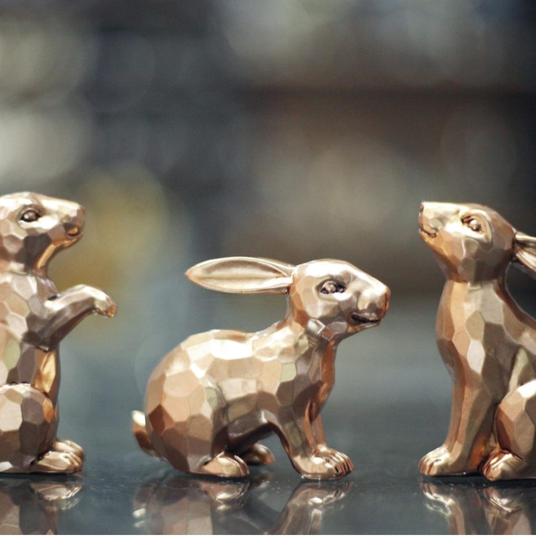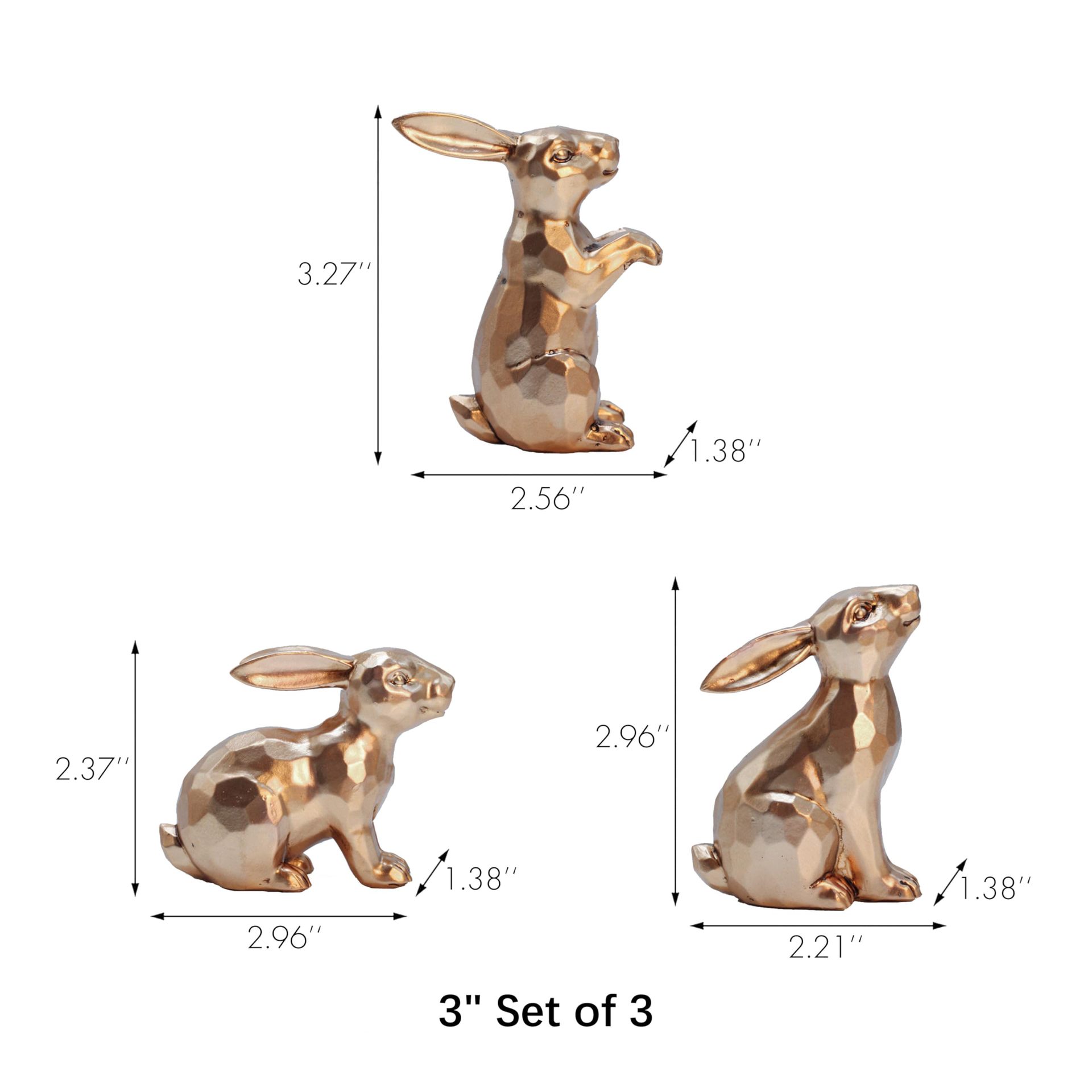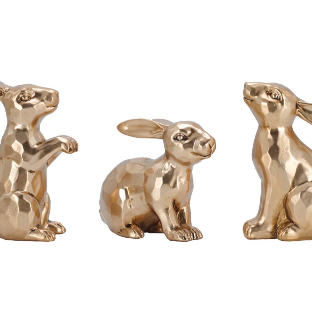 跨境金兔雕像复活节兔子雕像 3 件套家居装饰办公桌树脂装饰品
