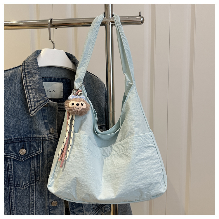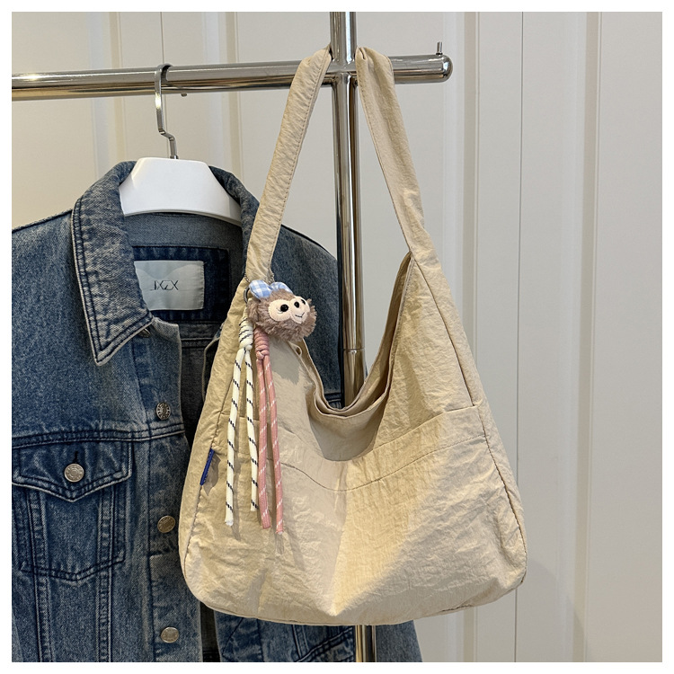 跨境2025韩版纯色慵懒风托特包休闲百搭单时尚上课补习通勤手提包
