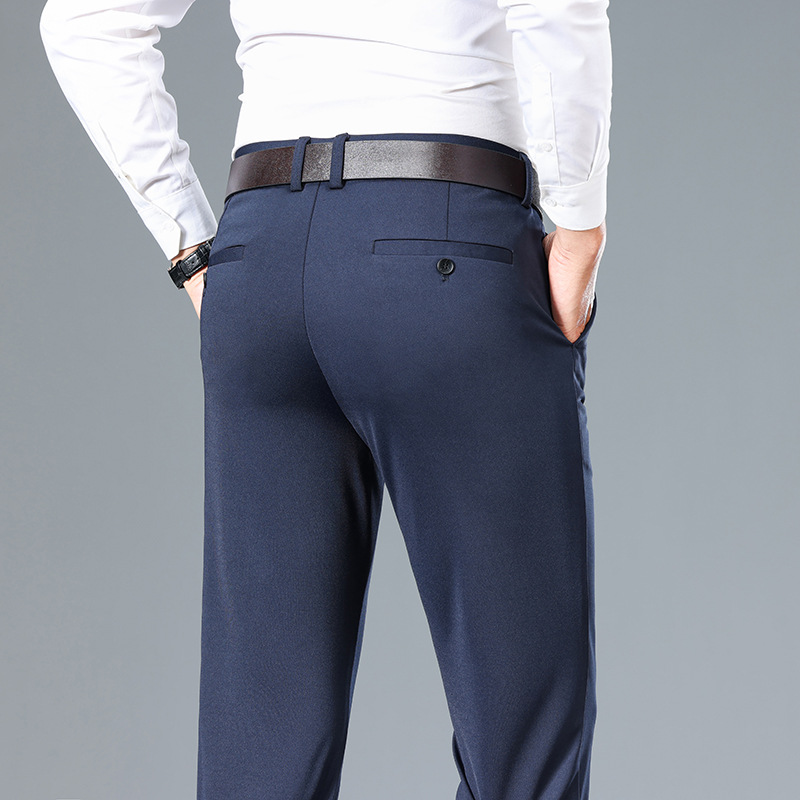 男士休闲裤春秋款跨境外贸中厚长裤直筒商务免烫男裤中年爸爸裤子