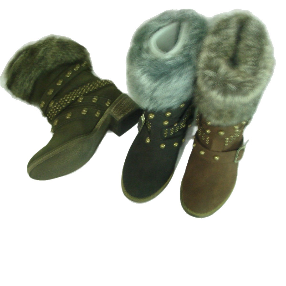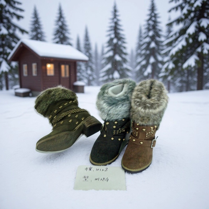 外贸款女雪地靴圆头低跟内增高坡跟绒面侧拉链中筒靴子 shoes