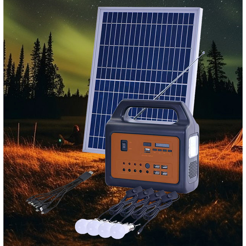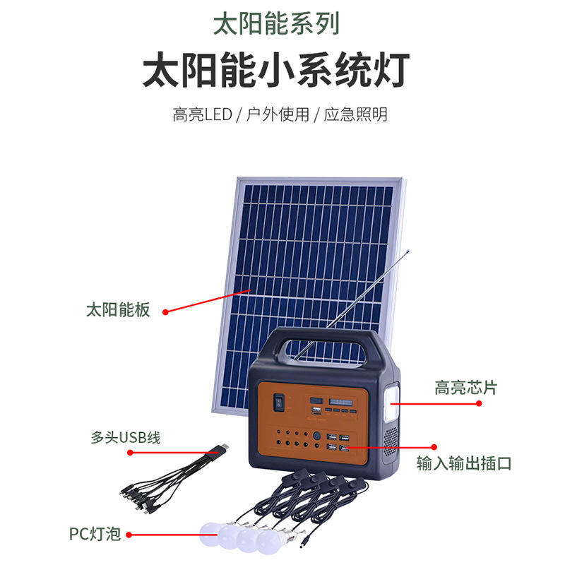 新款户外太阳能小系统灯家用应急野外露营夜市电池板便携式LED灯