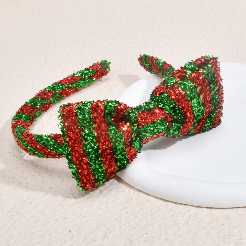 儿童圣诞发箍可爱红白拼色蝴蝶结头饰节日氛围感装饰品毛绒头箍