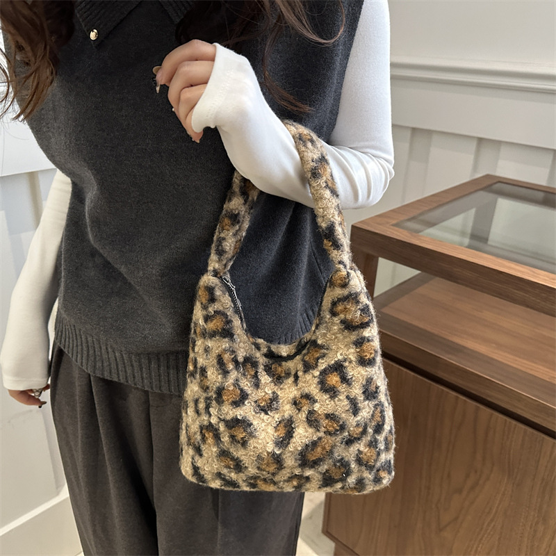 今年流行豹纹手提包2025新款时尚个性单肩包休闲复古毛绒腋下小包