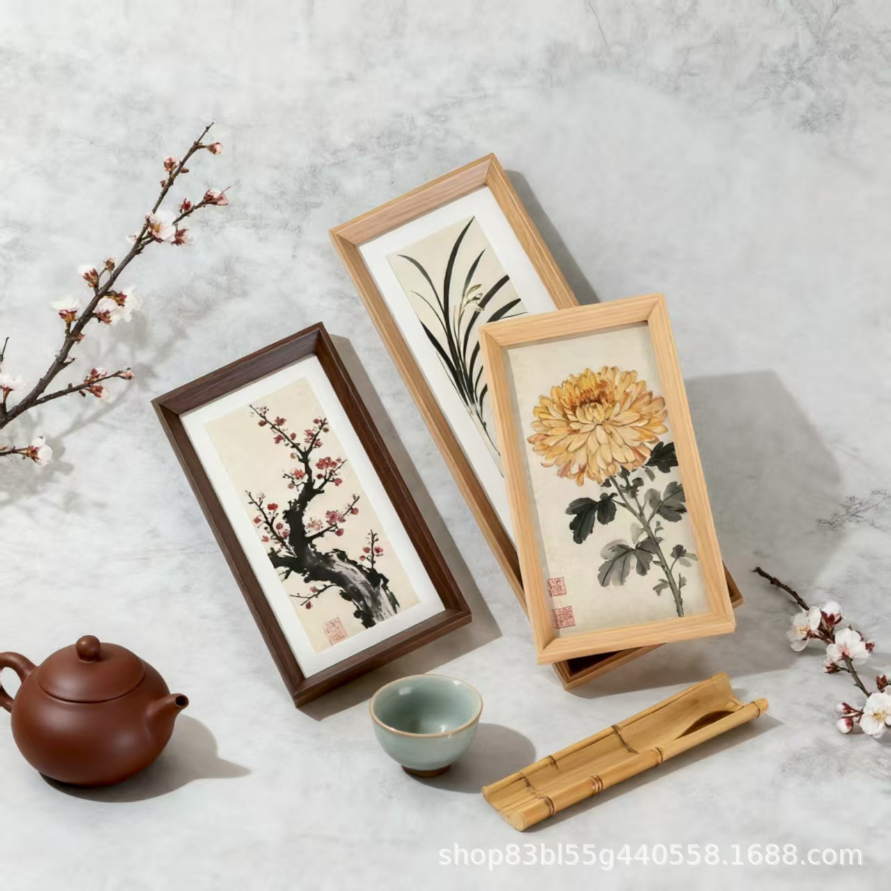 中式花鸟字画相框摆台批发长条画框国画装裱摆台书房茶馆文艺摆件