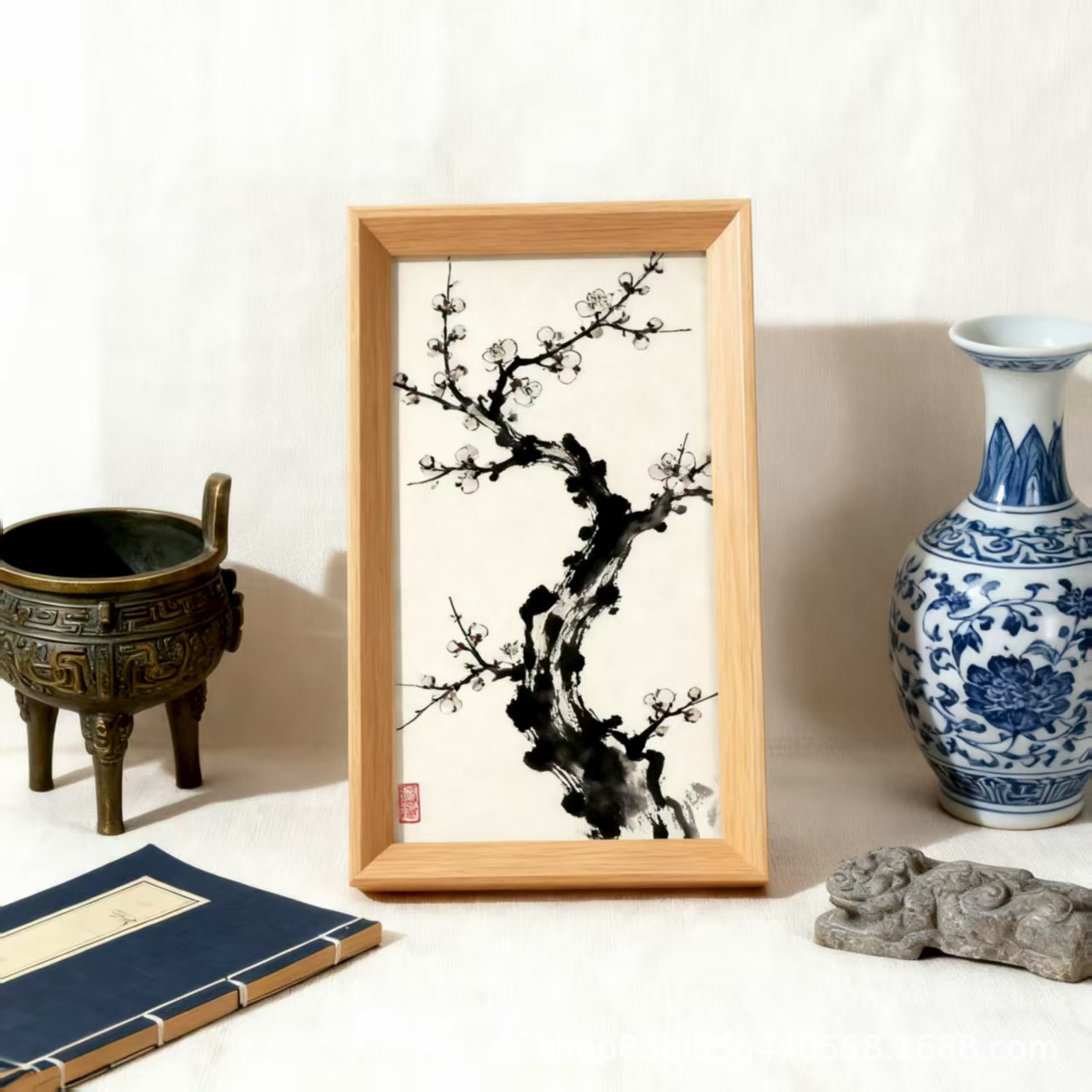 QL中式花鸟字画相框摆台;QL长条画框国画装裱摆台;QL书房茶馆文艺摆件