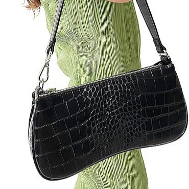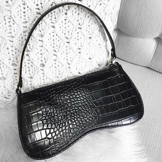 都市简约手提包气质腋下单肩包石头纹设计轻奢款黑色亮面逛街包袋