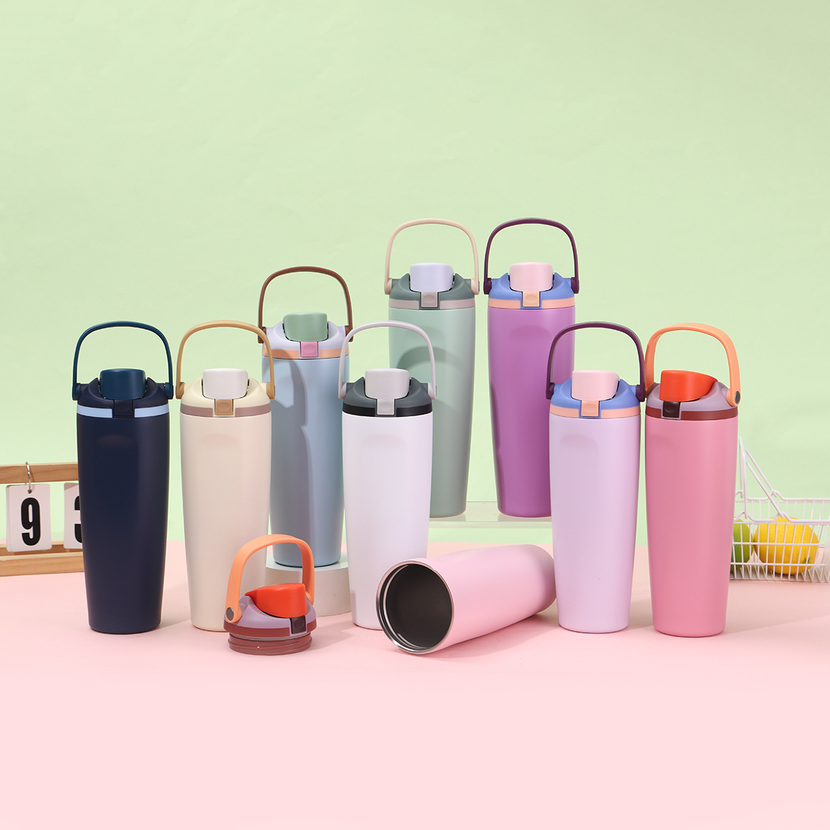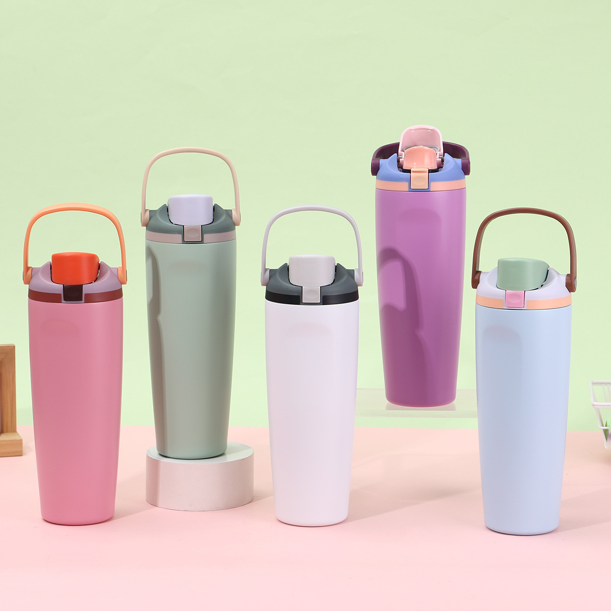 跨境大容量304不锈钢手提水果杯双层真空保温杯户外便携弹跳杯
