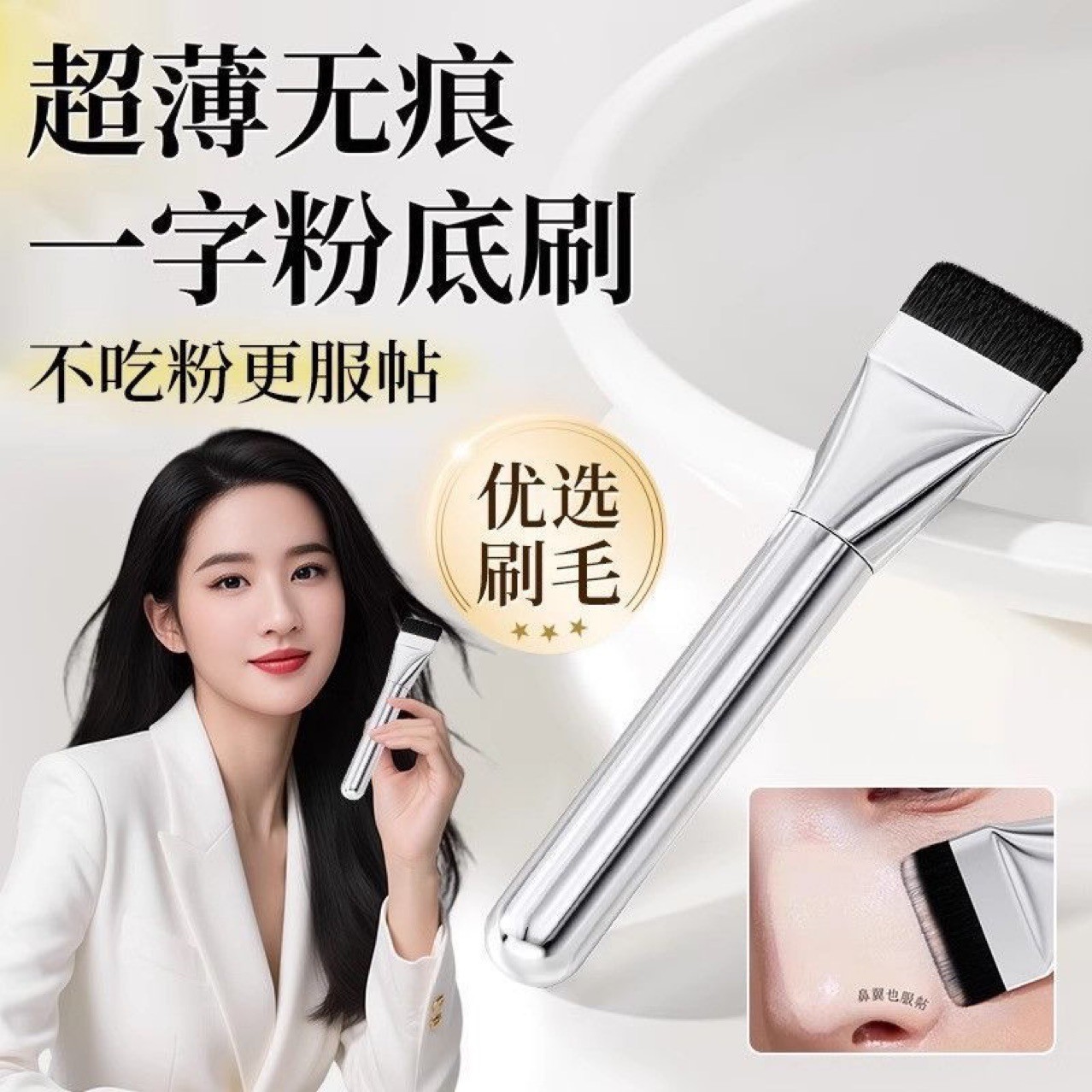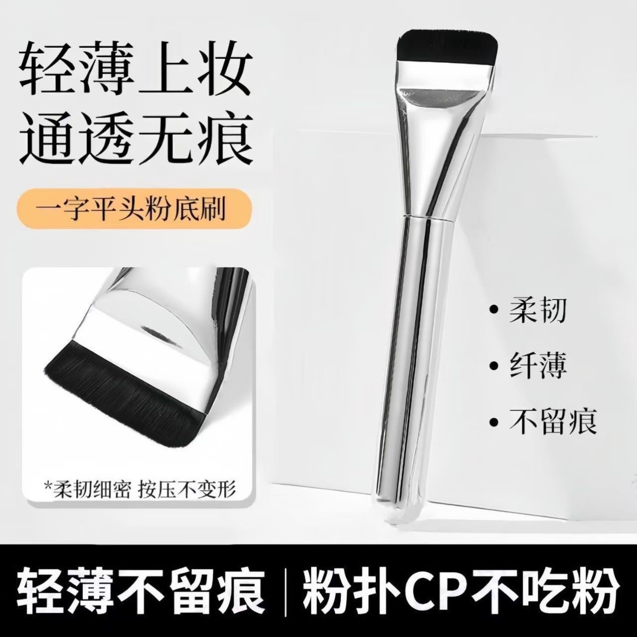 一字粉底刷平头面膜刷巨薄无痕裸肌遮瑕轻薄打底不吃粉美妆工具刷