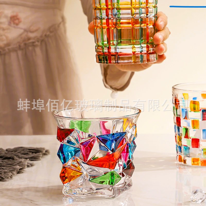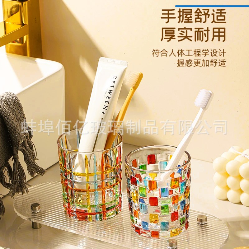 艺术高颜值牙刷杯刷牙杯家用漱口杯高级彩绘轻奢牙杯玻璃洗漱杯子