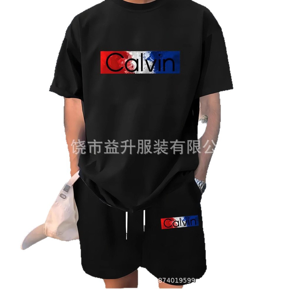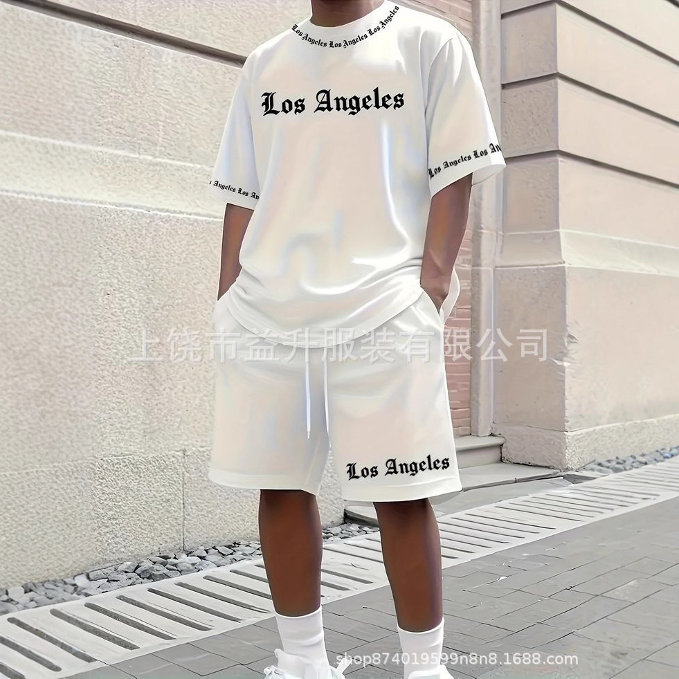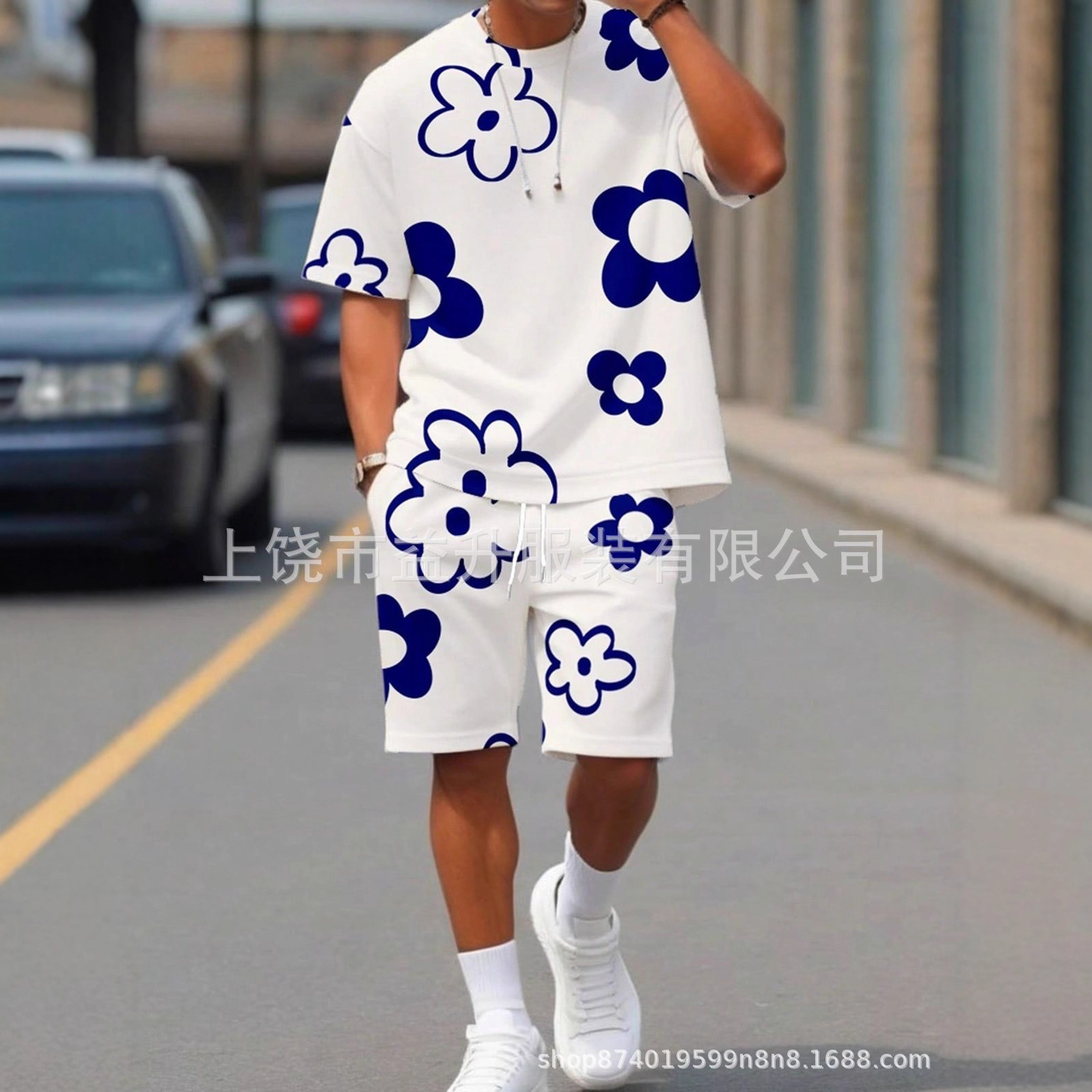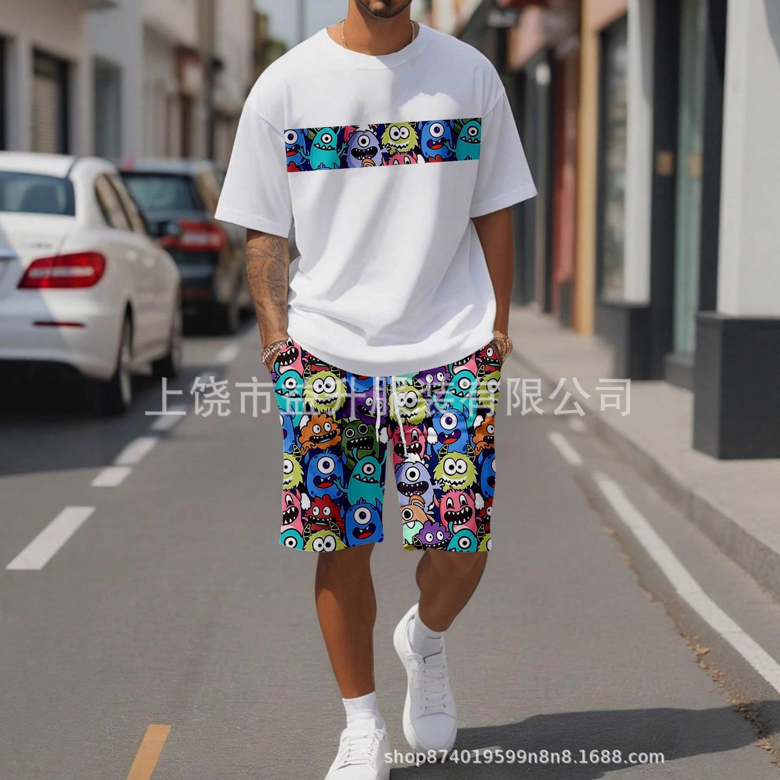 2025夏季个性时尚休闲短袖T恤套装 清凉夏季舒适街头男士套装