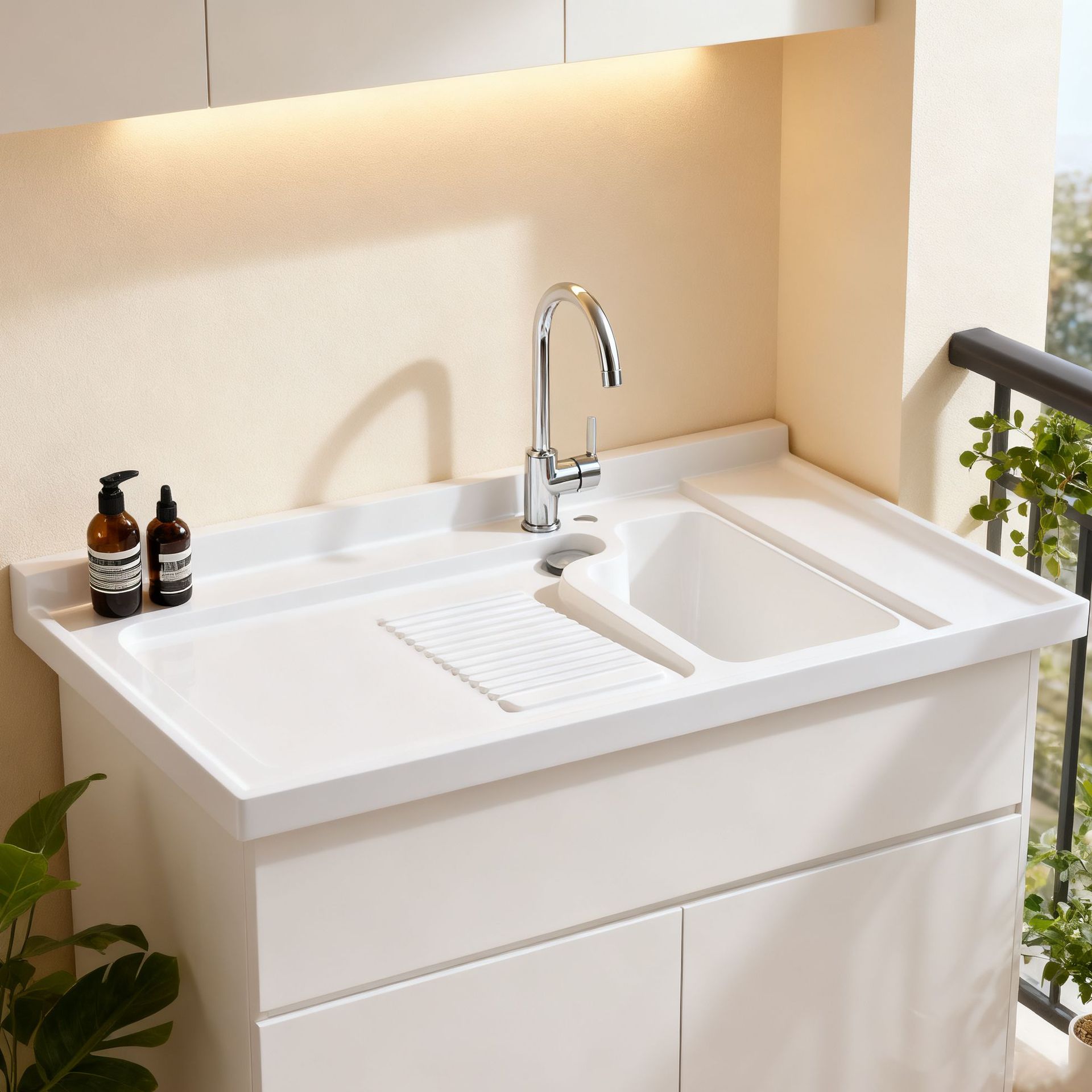 阳台洗衣盆 人造石洗衣池带搓衣板阳台家用庭院室内洗衣槽一体盆