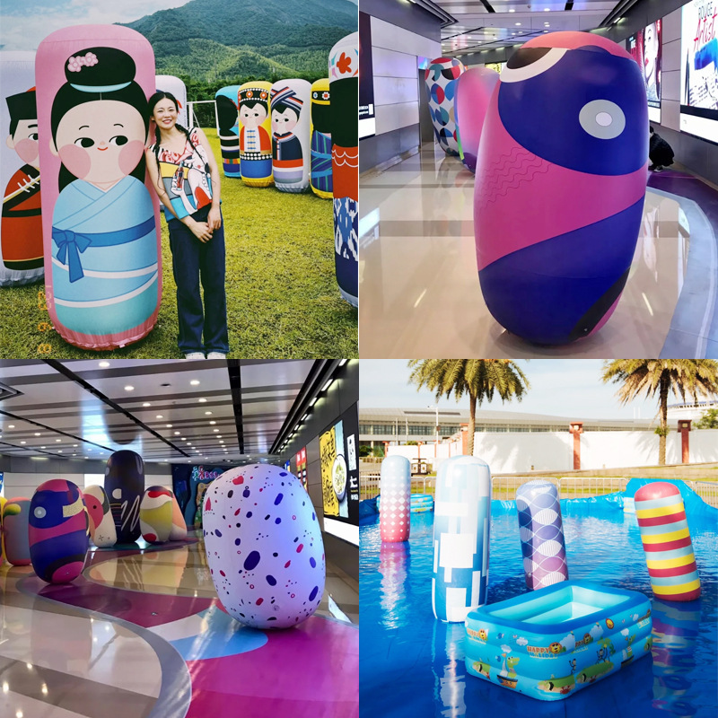 充气发光不倒翁立柱气模闭气彩色卡通商场美陈拳击柱出气 筒创意