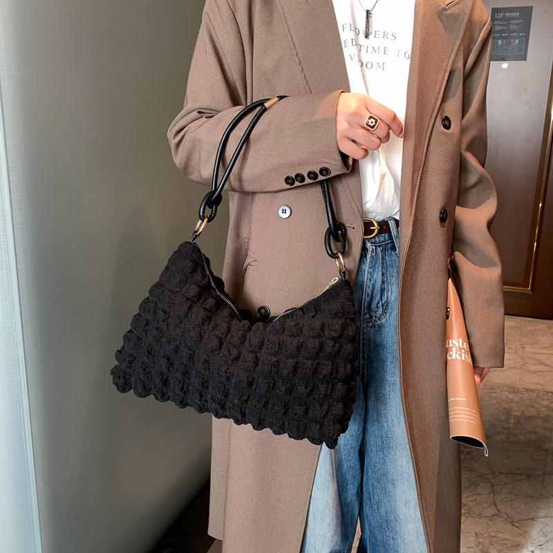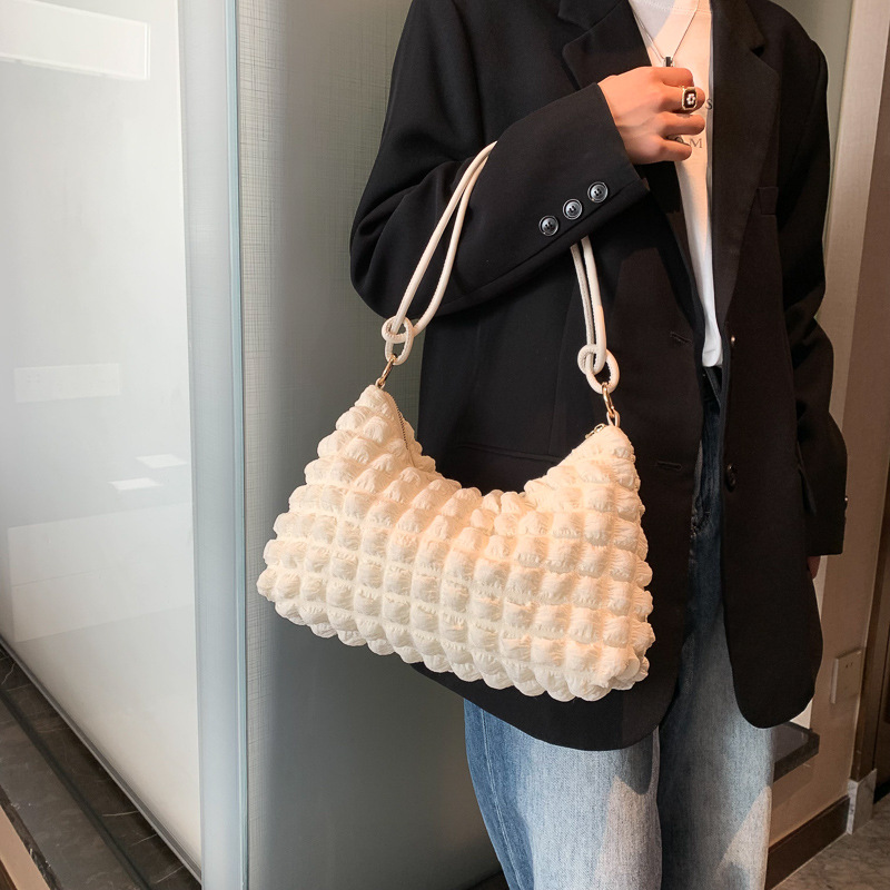 小清新泡泡柔软褶皱时尚潮流2024新款潮感腋下包春夏百搭潮流百搭