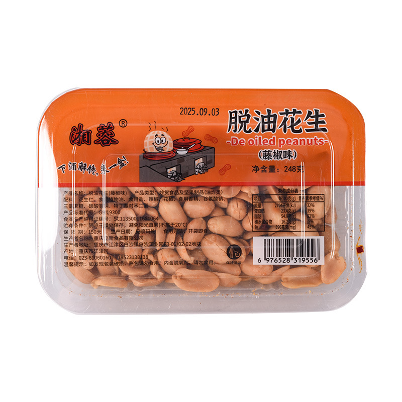 湘容脱油花生248g盒装藤椒味下酒菜小零食小吃去皮花生仁脱脂花生