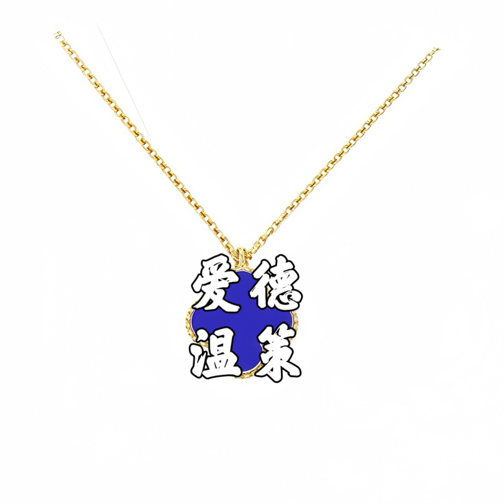 单花项链V金梵家四叶草高版CNC工艺天然蓝玛瑙锁骨链直播工厂直销