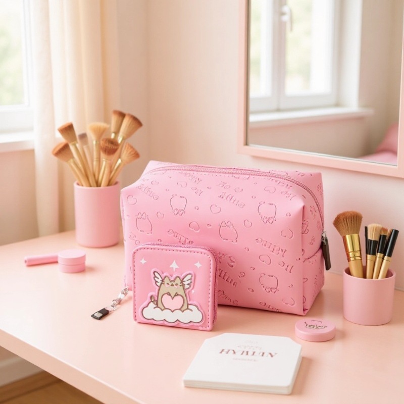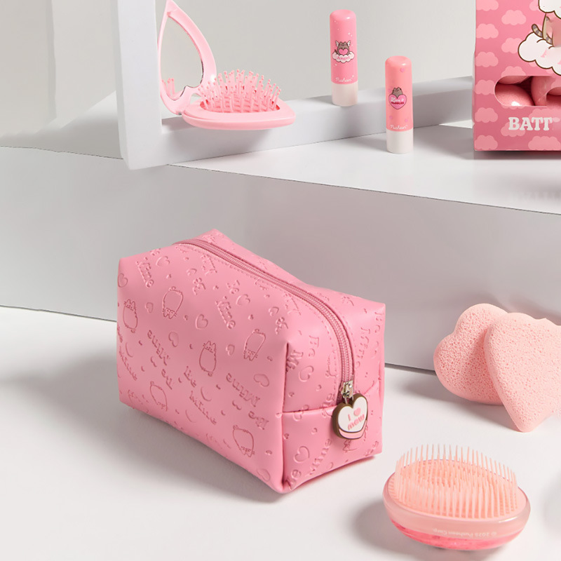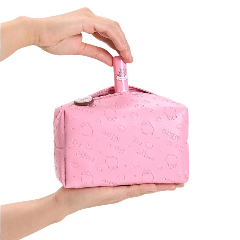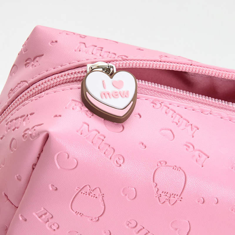 新款八角化妆包 猫咪压纹 可爱心形挂饰 出行美妆便携收纳包定制