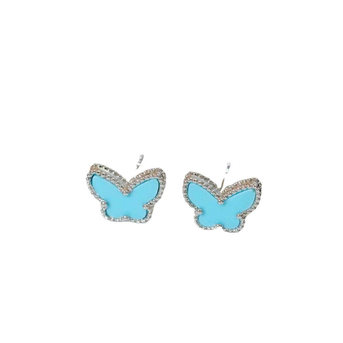 | 颜色 | 蓝松石蝴蝶白金耳钉 | 颜色 | 白贝母蝴蝶黄金耳钉 |