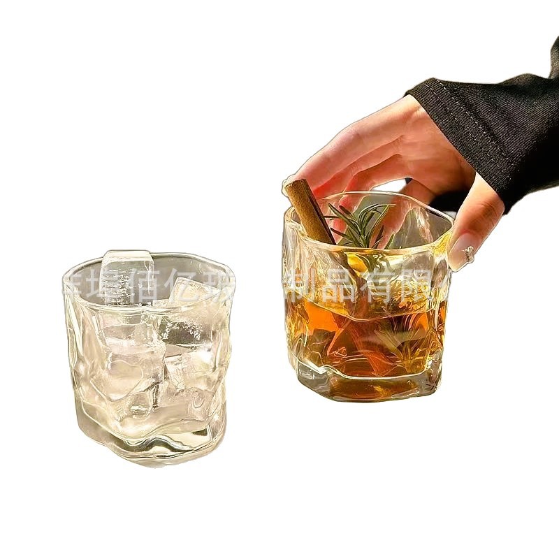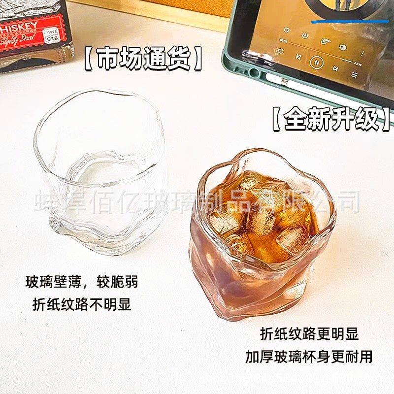 ins美式风扭扭杯冷饮果汁不规则玻璃杯洋酒啤酒威士忌杯家用褶皱