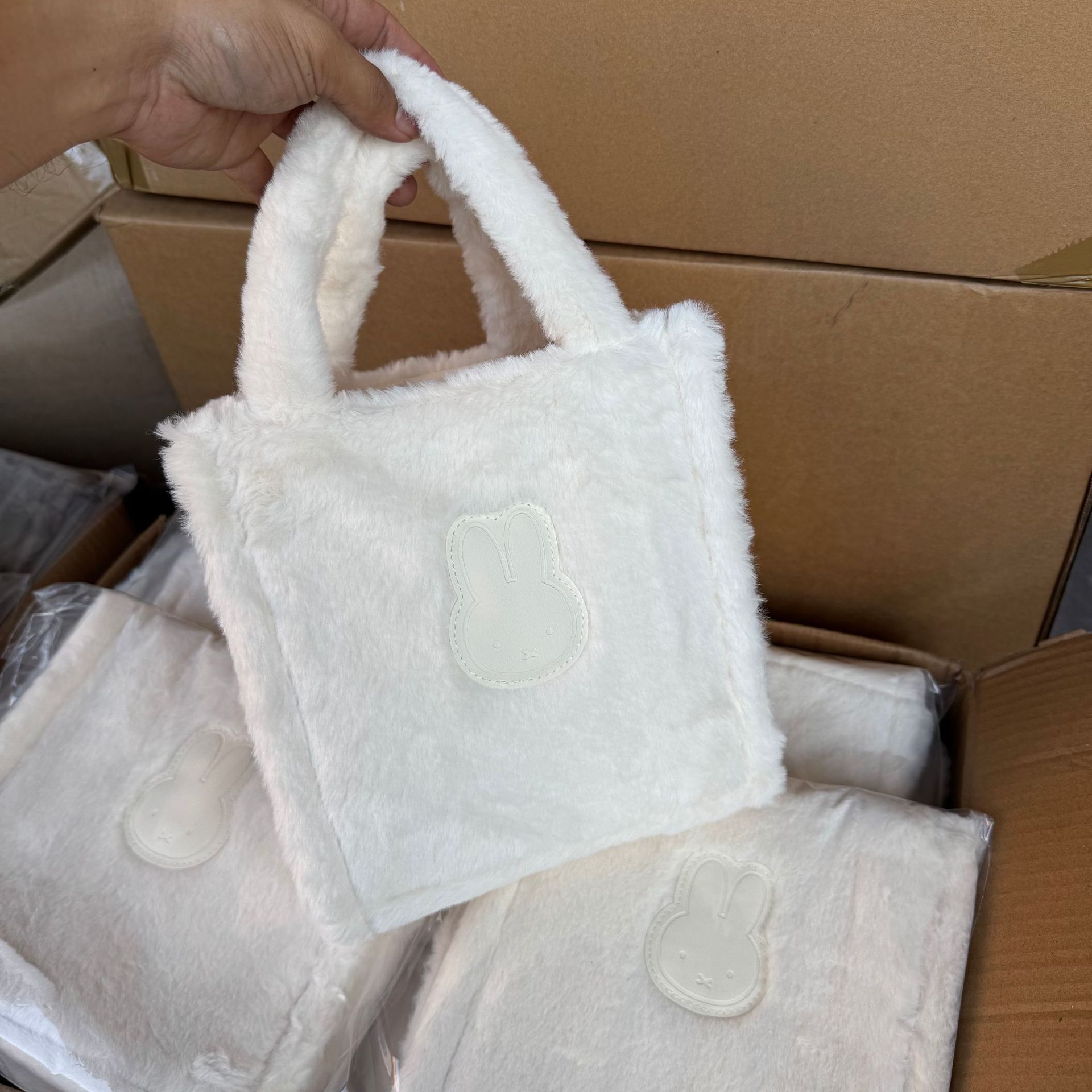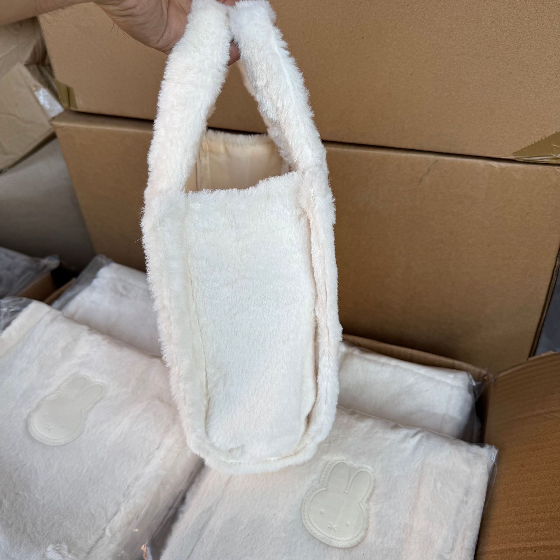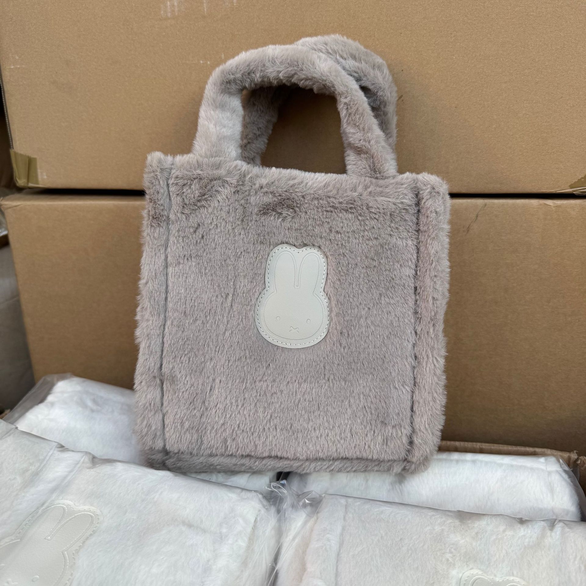 日单新款秋冬卡通毛绒手提托特包通勤百搭手拎包学生补习袋大容量
