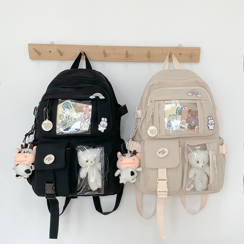 双肩包女初中生书包ins日系高中学生背包女大容量韩版旅行帆布包