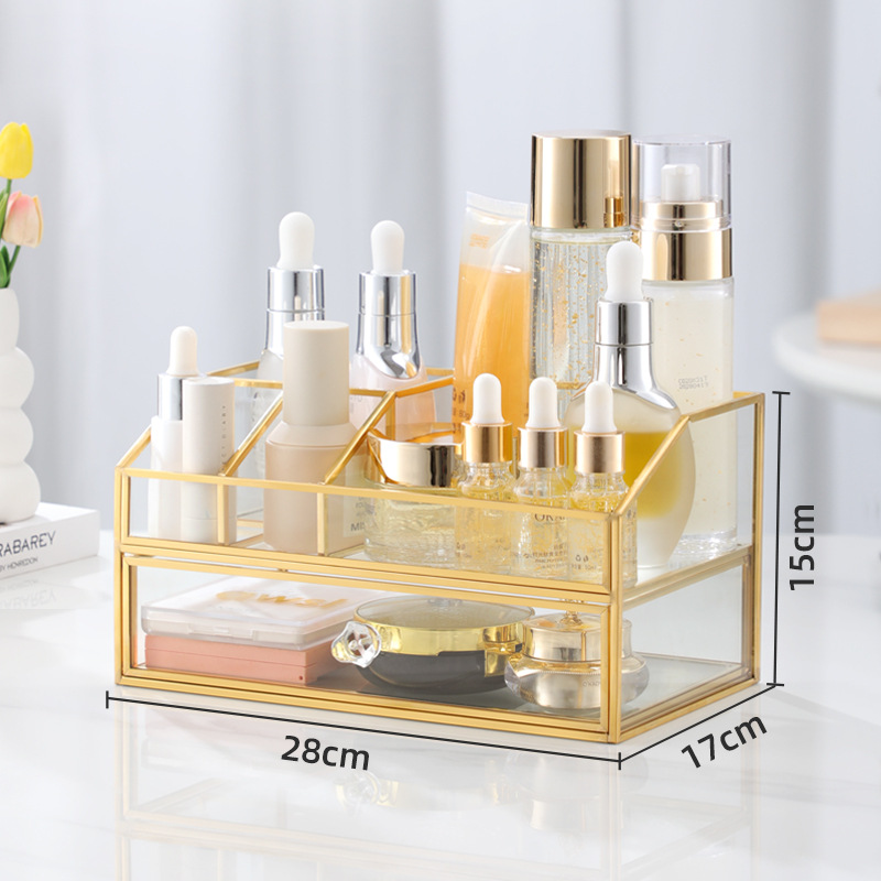 化妆品收纳盒ins风斜口透明玻璃储物盒桌面整理梳妆台面膜置物盒