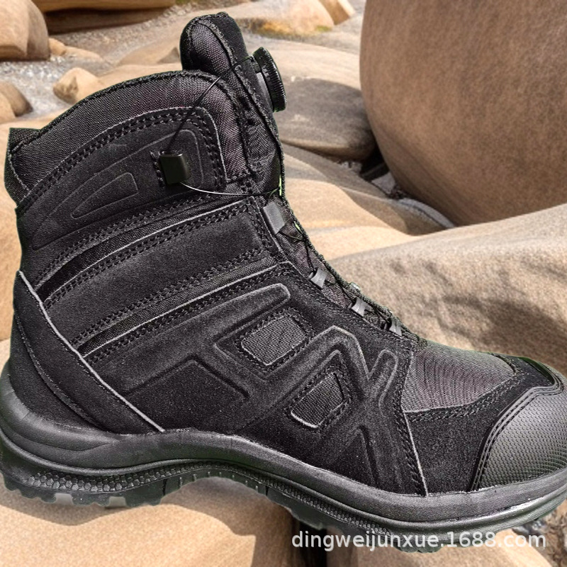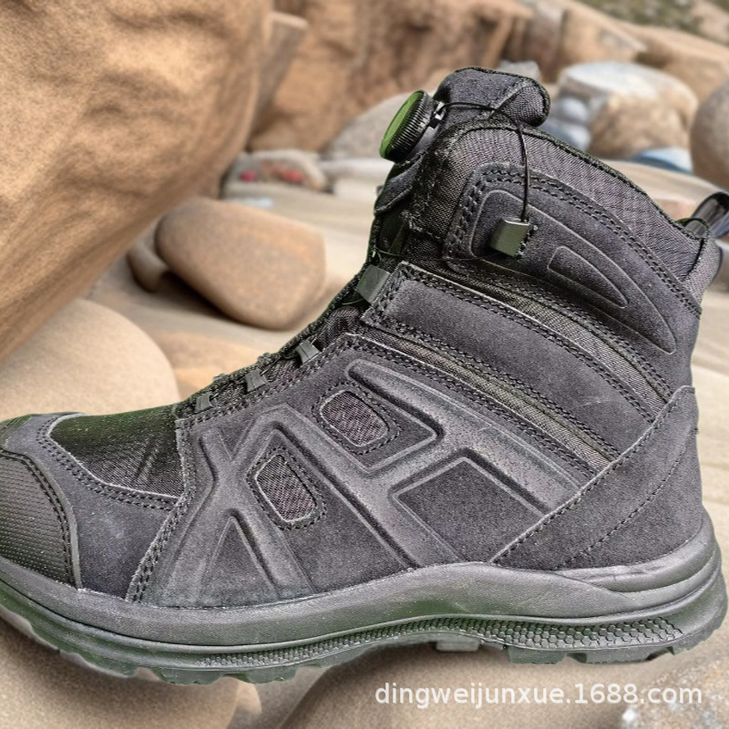 一体成型注射登山鞋户外快速旋转扣沙漠靴徒步爬山探险黑色牛皮鞋