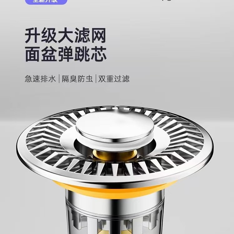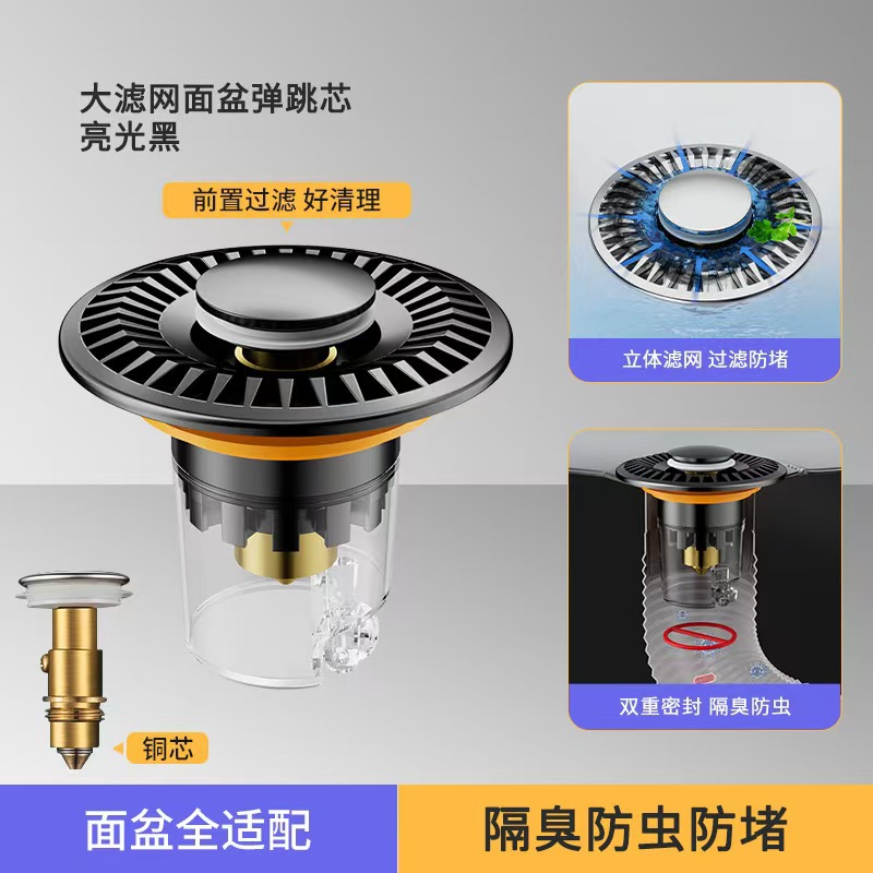 洗脸盆手池漏水塞子防堵臭弹跳芯面盆下水器通用按压式过滤网配件