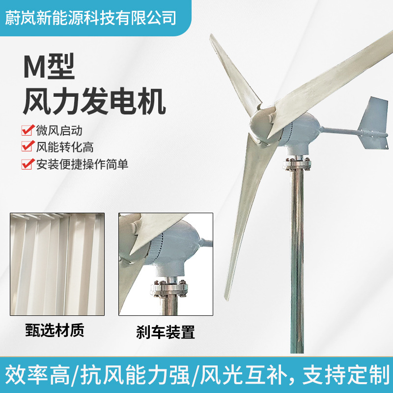 M型水平轴风力发电机小型风力发电机微风启动路灯监控系统厂家