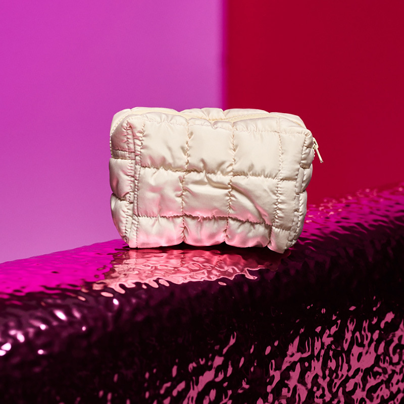 定制多色绗缝化妆包 蓬松质感立体方格 简约风美妆小物便携收纳包