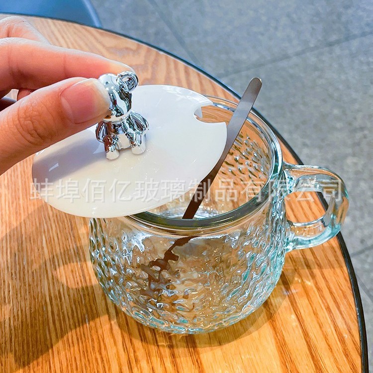 「日式卡通熊玻璃杯网红爆款水杯带把手茶杯早餐学生女咖啡牛奶杯