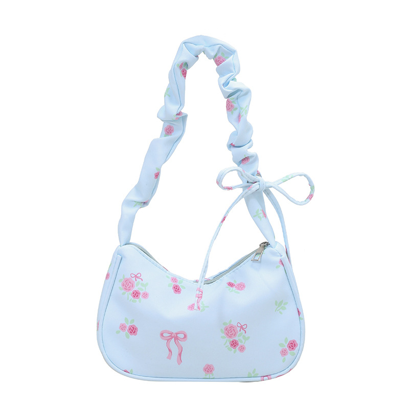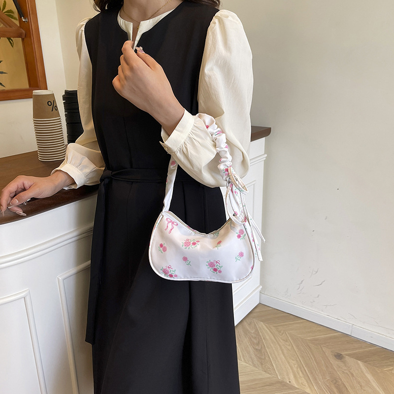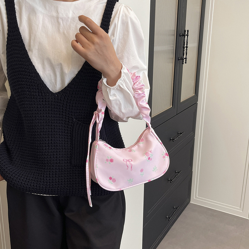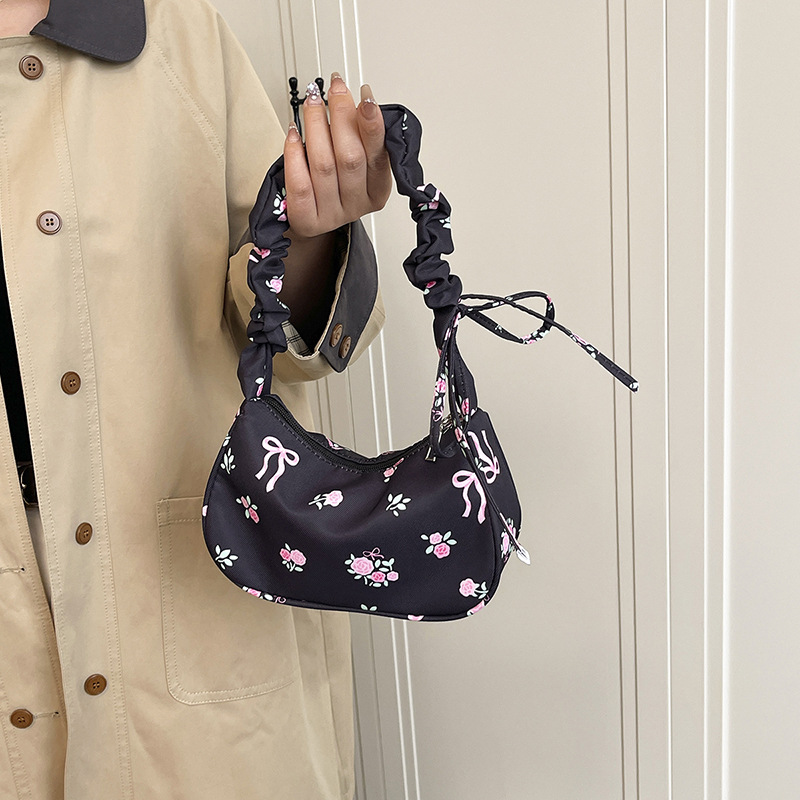 大容量单肩包秋季褶皱碎花腋下包2025新款小众设计甜美抽绳通勤包