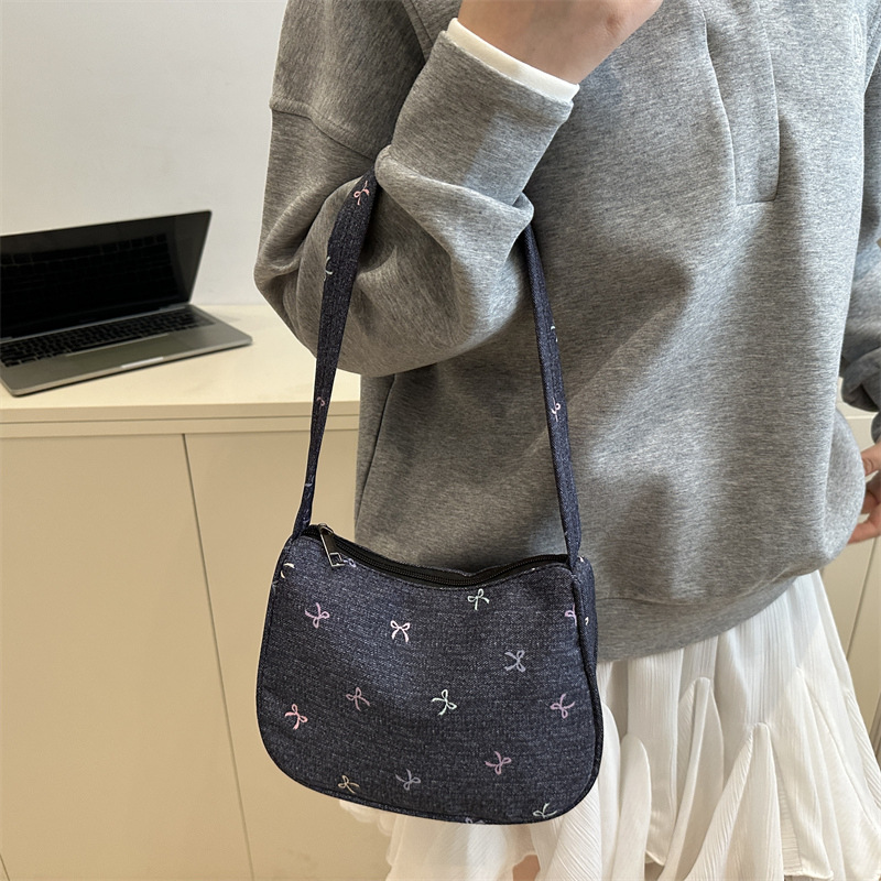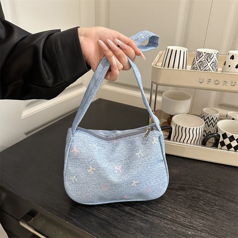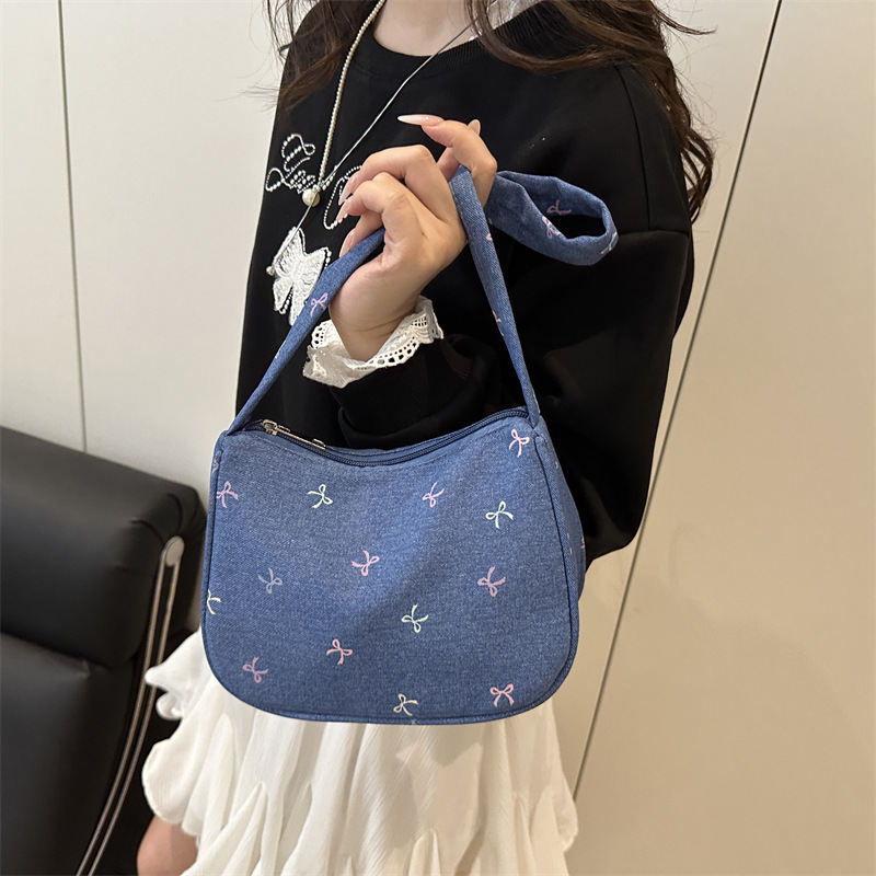 洋气纯色设计休闲时尚潮流2025秋季新款牛仔布女士质感单肩小方包