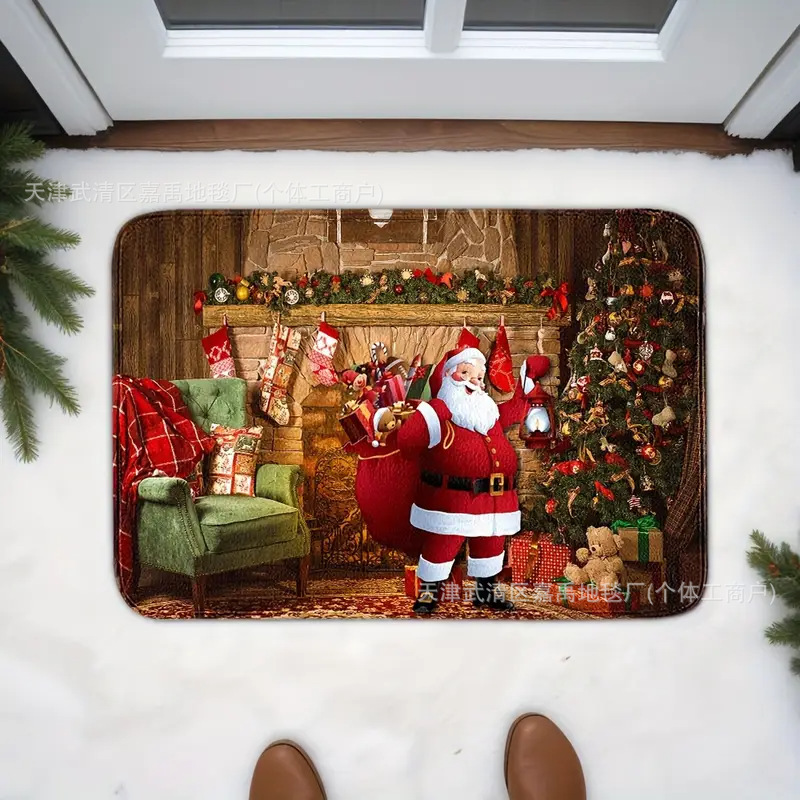 跨境爆款圣诞节硅藻泥地垫吸水浴室防滑垫亚马逊temu代发入户门垫