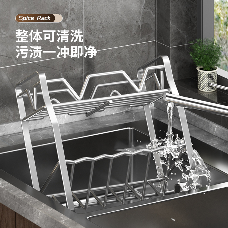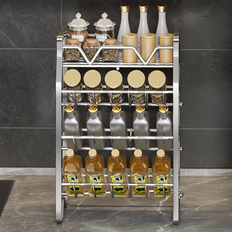 不锈钢置物架厨房收纳架台面落地置物架多功能调味用品收纳架子