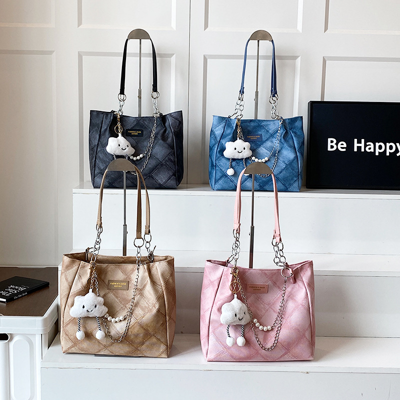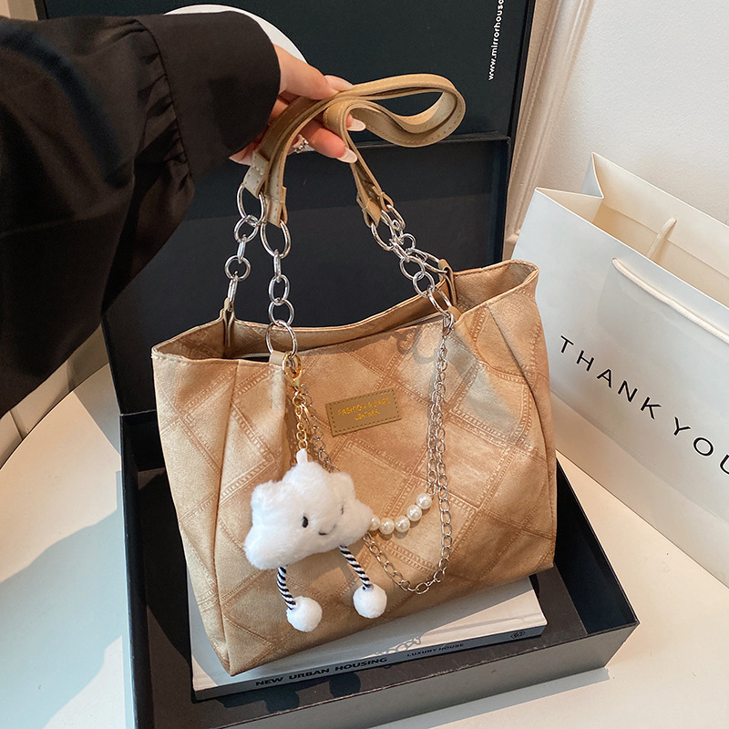 复古大容量菱格女包包2025新款潮流时尚托特包学生上课腋下单肩包