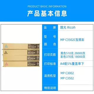 原装 理光 MPC3502C型 墨粉 黑色 红 黄 青 粉盒 C3002 3502 碳粉