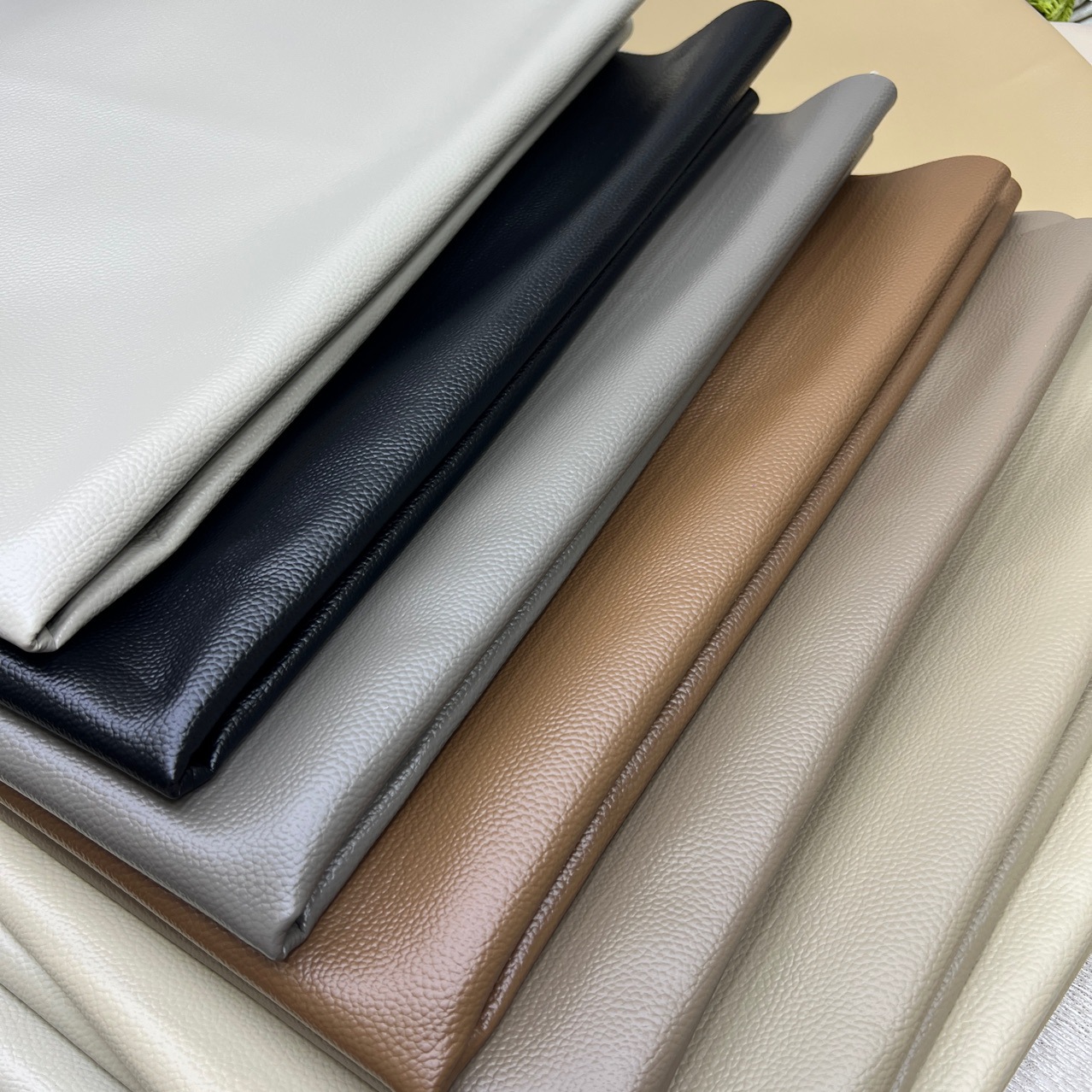 升级版荔枝纹人造皮革面料柔软抗皱生态真皮沙发面料皮料家具面料