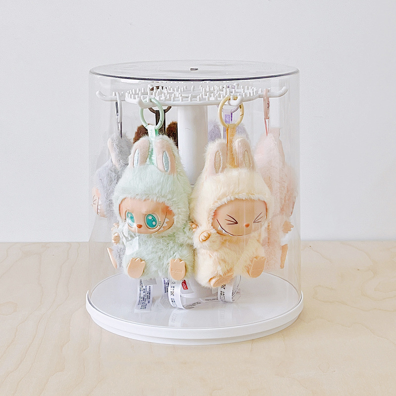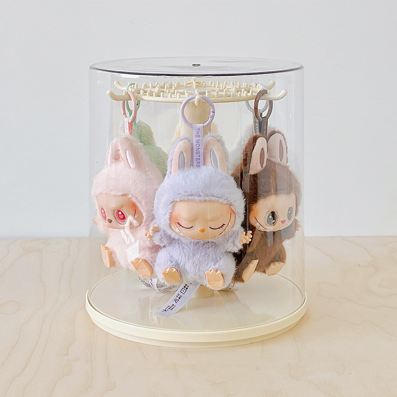 labubu亚克力透明展示盒盲盒收纳旋转桶泡泡玛特拉布布手办展示柜