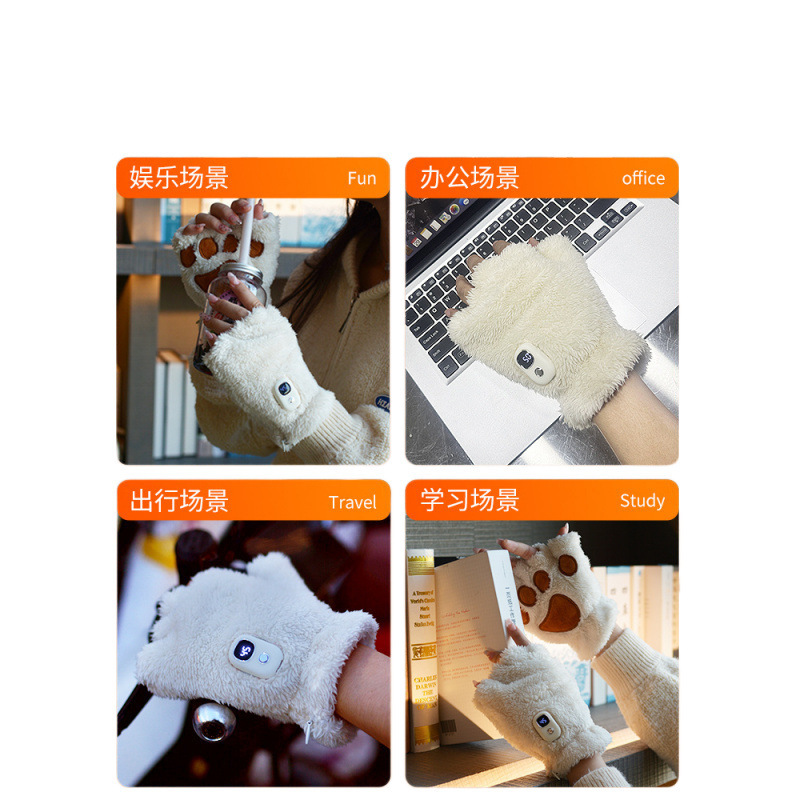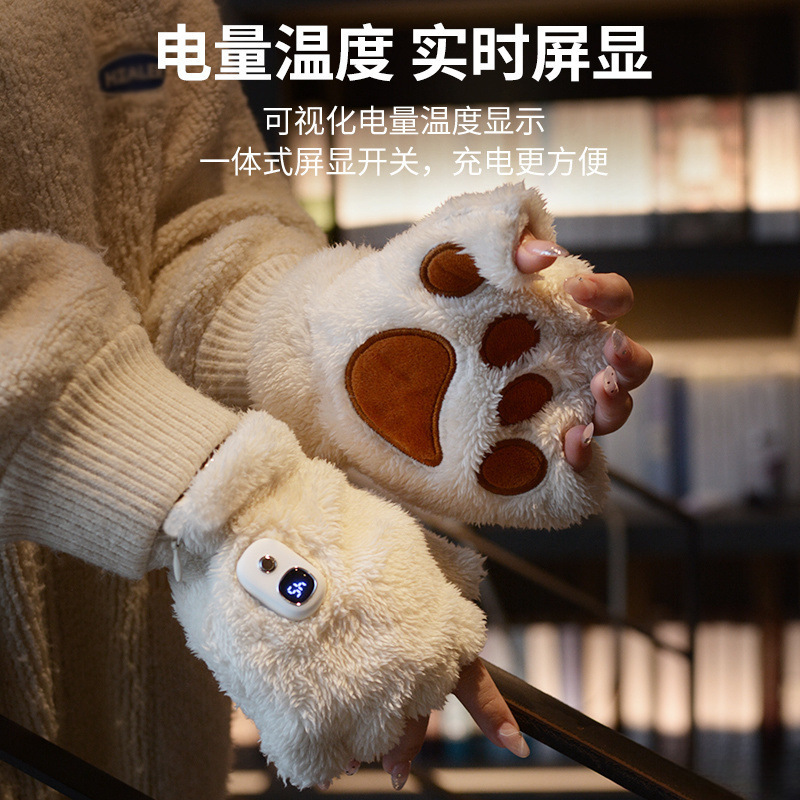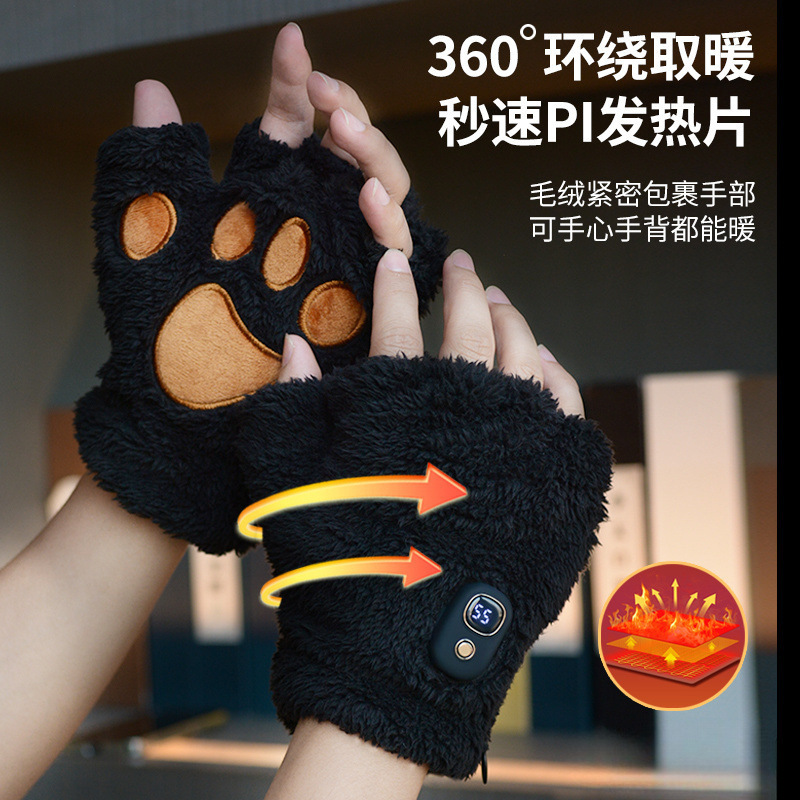 新款猫爪暖手宝发热手套充电式加热手套高颜值男女送竹质其他