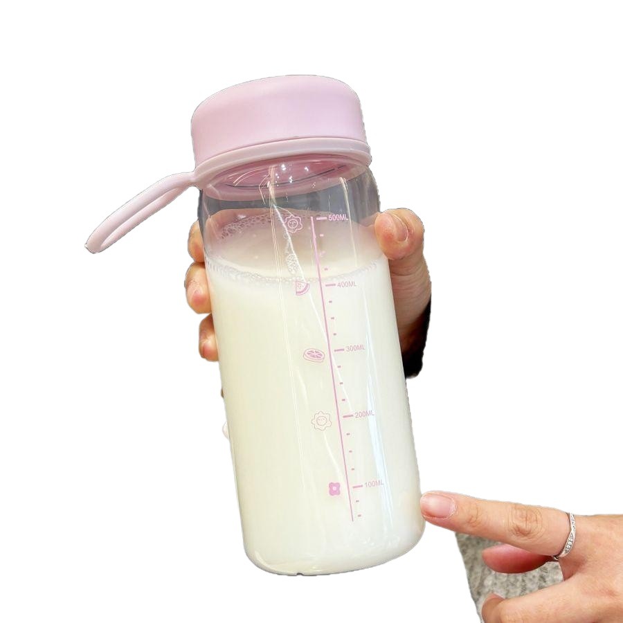 食品PC杯耐高温塑料水杯女生高颜值小巧便携杯子夏季刻度透明简约