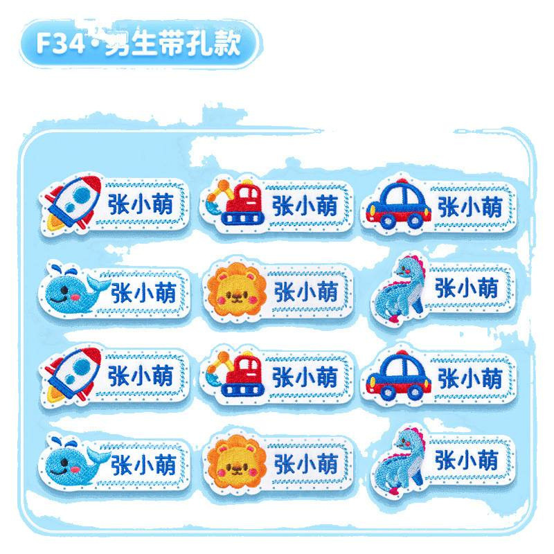 | 颜色 | 带缝孔(男宝款)12个+防水贴100个+鞋圈20个+名字印章 | 颜色 | 带缝孔班级萌趣(男宝款)6个(送针线包) |
