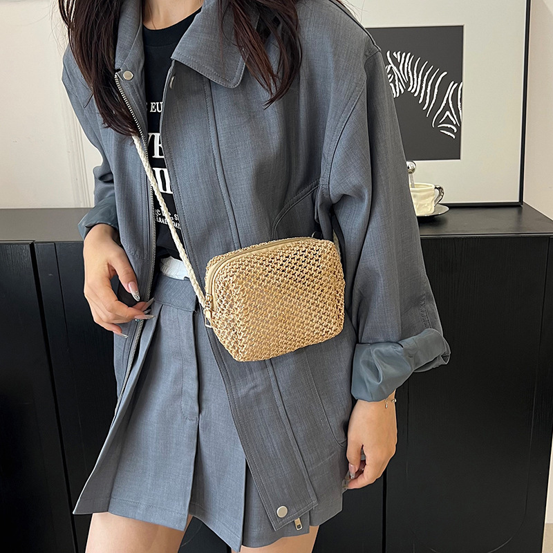 夏天迷你手工编织包包女2025新款潮小清新田园风斜挎草编包小方包