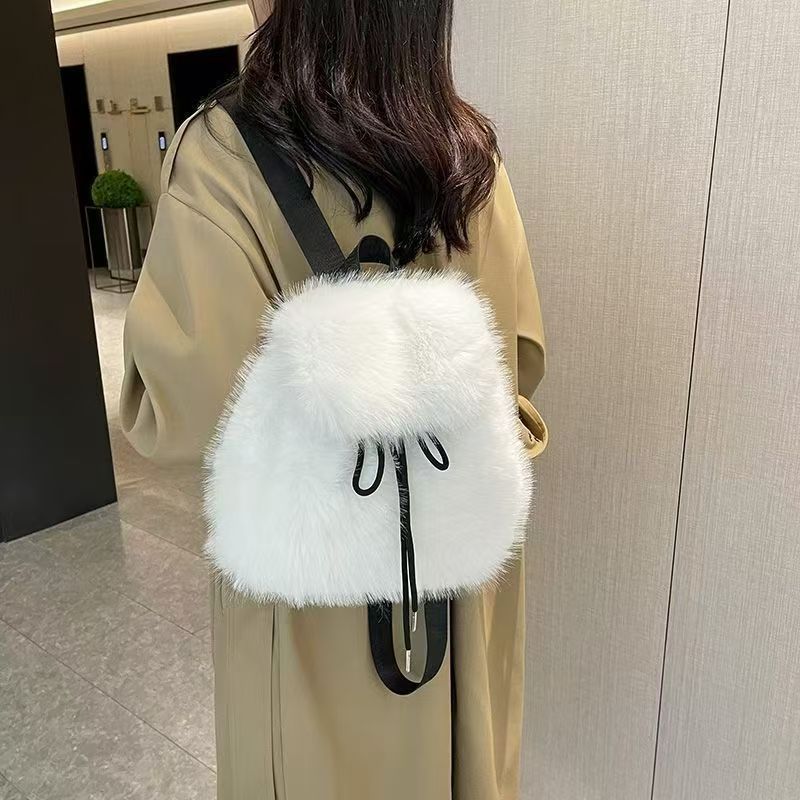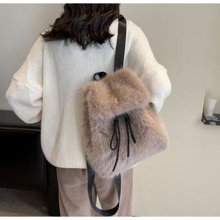 高级毛毛背包2025新款秋冬时尚休闲毛绒双肩可爱书包百搭毛绒包包