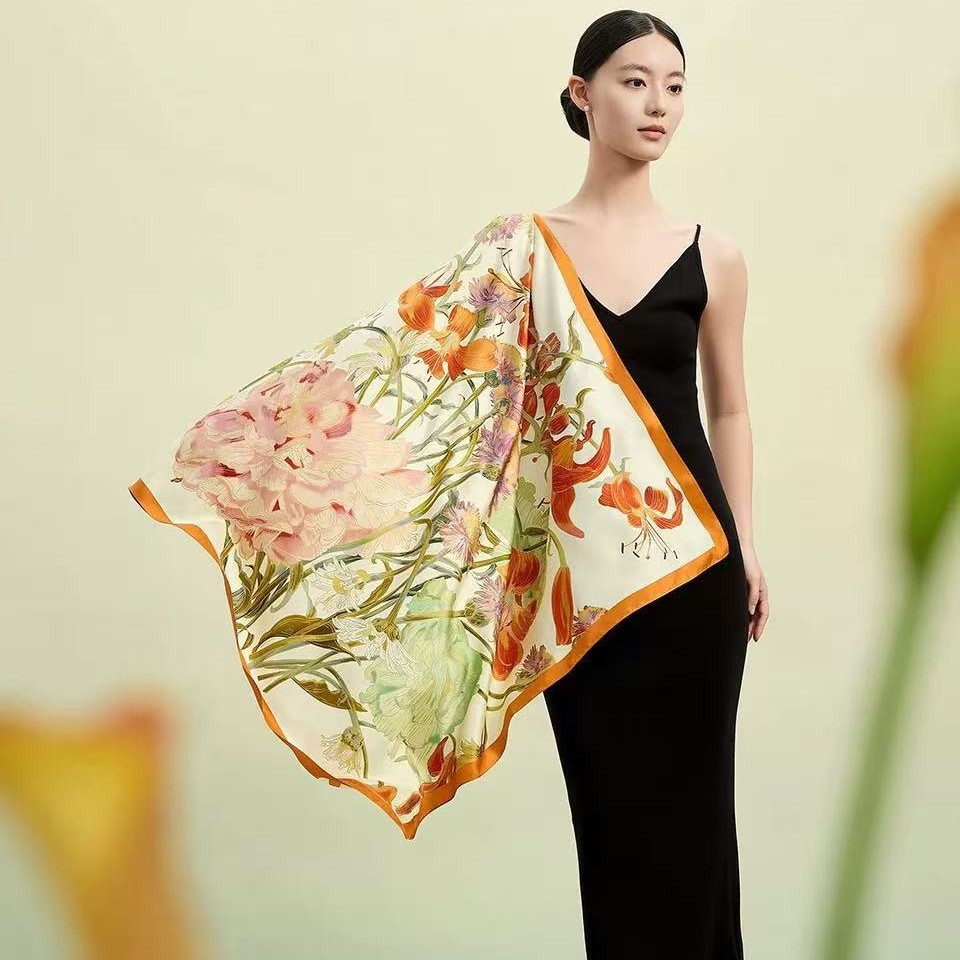 万事利×德基艺术馆真丝丝巾礼盒非遗手工大师黄永玉作品繁花似锦