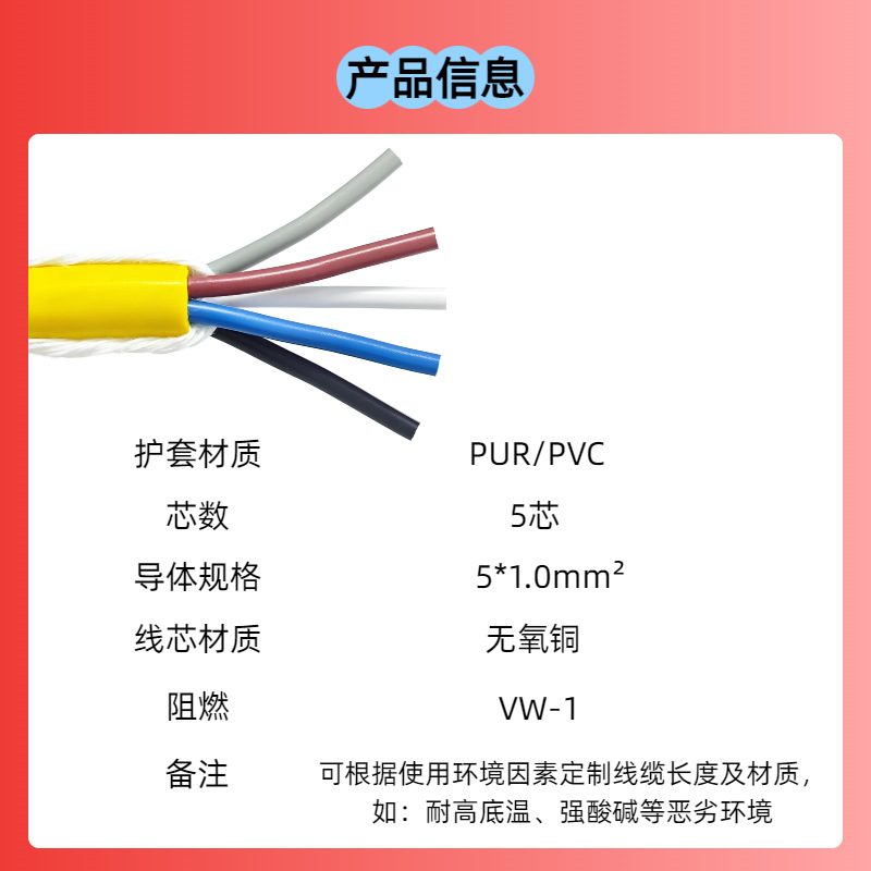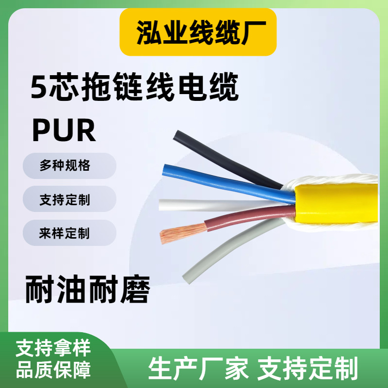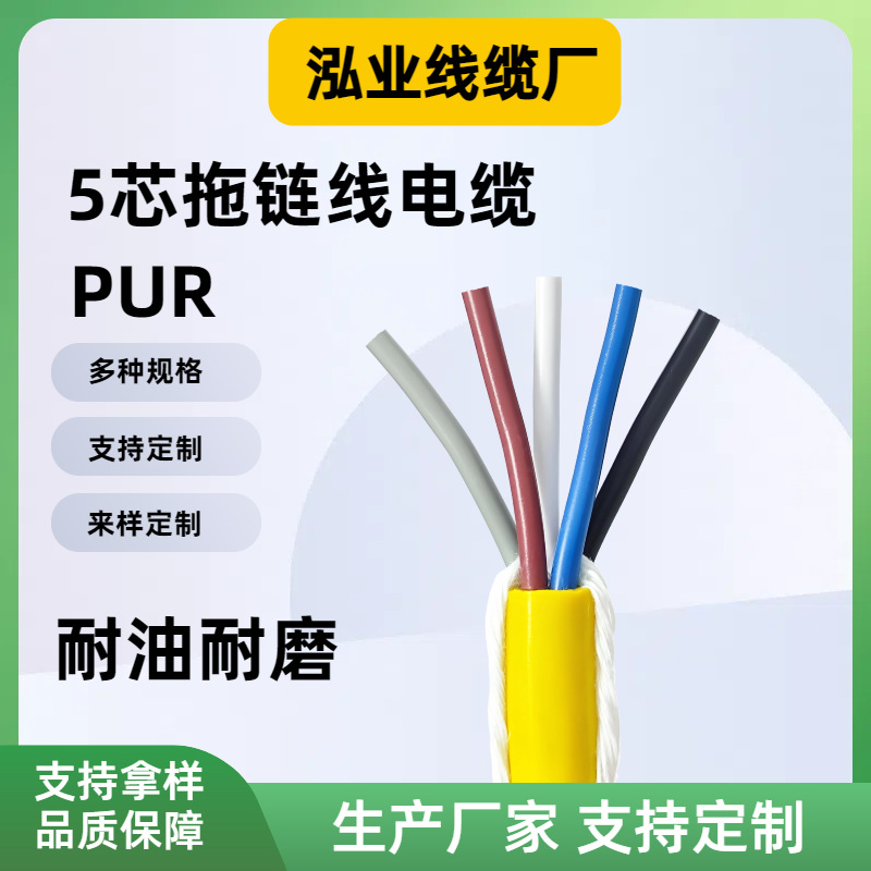 PUR 高柔性拖链电缆线黄色5芯耐油耐磨护套线机床工业io控制线
